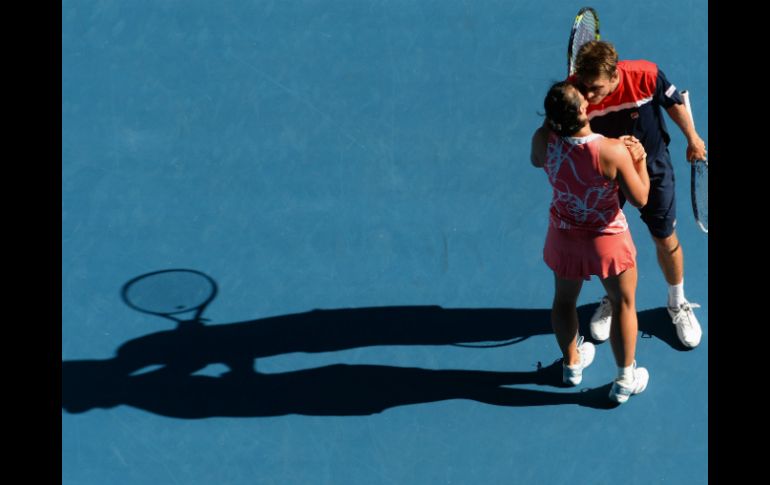 Deportes | La pareja local, conformada por Jarmila Gajdosova y Matthew Ebden se corona Australia festeja título de dobles mixtos La pareja local, conformada por Jarmila Gajdosova y Matthew Ebden se corona en el Abierto Por: EFE 27 de enero de 2013 - 07:46 hs La pareja juega una gran final y contra los pronósticos, consiguen el título. AFP / MELBOURNE, AUSTRALIA (27/ENE/2013).- La pareja australiana formada por Jarmila Gajdosova y Matthew Ebden ganó el título de mixtos del Abierto de Australia al vencer hoy en la final a los checos Lucie Hradecka y Frantisek Cermak por 6-3 y 7-5. Los australianos habían entrado en el torneo gracias a una invitación especial de la organización y habían vencido en su ruta a la final, entre otros rivales, a la rusa Elena Vesnina y al indio Leander Paes, segundos favoritos, en la segunda ronda, y a la rusa Nadia Petrova y al indio Mahesh Bhupahti, quintos, en cuartos de final. Temas Tenis Abierto de Australia Recibe las últimas noticias en tu e-mail Todo lo que necesitas saber para comenzar tu día Registrarse implica aceptar los Términos y Condiciones