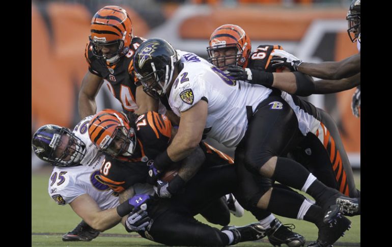 Deportes | Los Cuervos dominan su división y los Bengalíes alcanzan a calificar también Baltimore gana título divisional Los Cuervos dominan su división y los Bengalíes alcanzan a calificar también Por: AP 1 de enero de 2012 - 19:39 hs Los Cuervos impusieron su juego defensivo para llevarse la división central de la Conferencia Americana. AP / CINCINNATI, OHIO (01/ENE/2012).- Ray Rice realizó el domingo un par de carreras largas para touchdown, llevando a Baltimore a una victoria de 24-16 sobre los Bengalíes de Cincinnati y asegurando a los Cuerv os su tercer título consecutivo de la División Norte de la Conferencia Americana y el segundo lugar de la siembra en la postemporada. Baltimore (12-4) descansará en la primera ronda y luego tendrá un juego de postemporada en casa, donde los Cuervos tienen marca de 8-0 esta campaña. A pesar de la derrota, los Bengalíes (9-7) también pasaron a la postemporada, asegurando el último boleto de comodín, ya que Jets y Broncos también perdieron. Es la tercera aparición de Cincinnati en la postemporada en los últimos 21 años. Con el Paul Brown Stadium lleno de aficionados de los Bengalíes por primera vez en toda la temporada, Rice realizó las jugadas más importantes en una tarde borrascosa. En la cuarta jugada tuvo un acarreo de 70 yardas para touchdown, la mejor en su carrera. Rice también realizó una carrera de 51 yardas para anotación cuando restaban 5:41 minutos de juego, y terminó con 191 yardas ganadas en 24 acarreos. Temas NFL Futbol Americano Cuervos de Baltimore Bengalíes de Cincinnati Lee También Tabla de goleo Liga MX: Posiciones tras la Jornada 13 del Apertura 2025 Así queda la tabla general de la Liga MX tras la J13 del Apertura 2025 Mundial Sub-20: ¿Dónde ver EN VIVO la final Argentina vs. Marruecos? Futbol hoy 19 de octubre de 2025: ¿Dónde ver los partidos en vivo? Recibe las últimas noticias en tu e-mail Todo lo que necesitas saber para comenzar tu día Registrarse implica aceptar los Términos y Condiciones