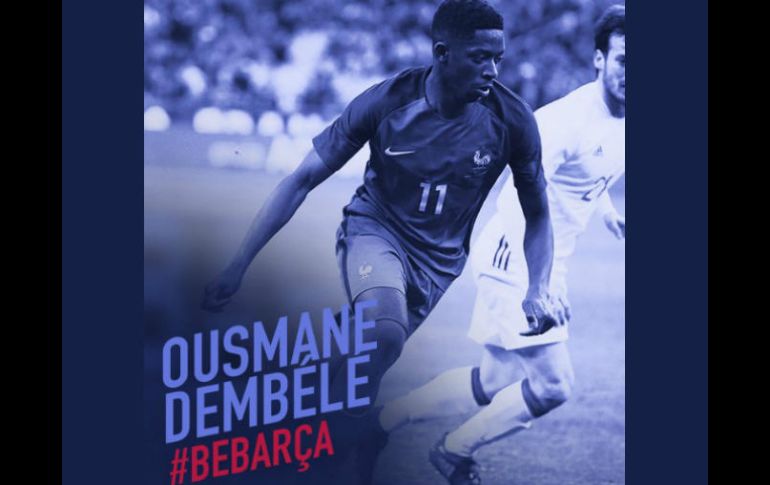 BARCELONA, ESPAÑA (25/AGO/2017).- El extremo francés del Borussia Dortmund, Ousmane Dembélé, fichó por el Barcelona en un traspaso de 105 millones de euros más variables, anunció este viernes el club azulgrana, convirtiéndose en el fichaje más caro en la historia de la entidad catalana."El FC Barcelona y el Borussia Dortmund han llegado a un acuerdo para el traspaso de Ousmane Dembélé", afirmó el club azulgrana en un comunicado, que señala que su cláusula de rescisión es de 400 millones de euros. Dembélé se compromete con el Barcelona para las cinco próximas temporadas.