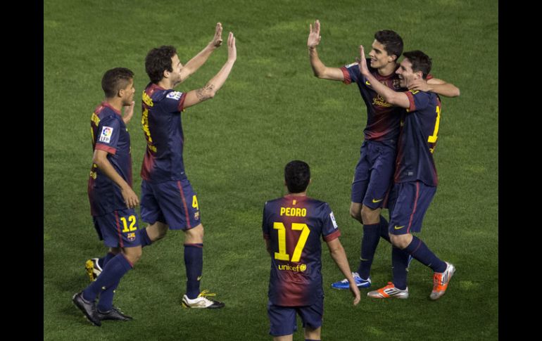 Deportes | El cuadro culé mete un contundente 5-0 en Vallecas Barcelona golea al Rayo El cuadro culé mete un contundente 5-0 en Vallecas Por: NTX 27 de octubre de 2012 - 17:32 hs Dos Santos, Fábregas, Pedro y Messi festejan uno de los cinco goles del Barcelona,. AFP / MADRID, ESPAÑA (27/OCT/2012).- El FC Barcelona, que cuenta en sus filas con el mexicano Jonathan dos Santos, goleó este sábado 5-0 al Rayo Vallecano para afianzarse en el liderato por una semana más. A los 20 minutos, David Villa inició la fiesta de goles en el estadio de Vallecas, seguido del argentino Lionel Messi (48 y 89), Xavi Hernández (78) y Cesc Fábregas (80), que brillaron en esta novena jornada de la Liga de España. Con esta victoria, el Barça llegó a 25 unidades e independientemente de los demás resultados seguirá en lo más alto de la tabla. Rayo, por su parte, se quedó con 10 puntos y cayó al décimo tercer puesto general. En lo que respecta a la actuación del volante mexicano Dos Santos, ingresó al minuto 83 por Xavi en lo que fue su debut oficial esta temporada, luego de estar presente en las dos convocatorias anteriores, partidos en los que se quedó en el banco de suplentes. El Rayo salió a presionar desde temprano a la escuadra blaugrana, que sufrió en los primeros minutos al no tener el control del balón y no poder llegar al área rival. Pese a ello, el Barça pudo adelantarse a los 20 minutos a través de Villa, quien no desperdició un pase a profundidad de Fábregas para fusilar al arquero Ruben con disparo raso, en lo que fue su primera llegada. Los anfitriones jugaban mejor, pese al gol encajado, pues se mantuvo firme y con buen ritmo continuó presionando en el área rival. En la segunda mitad, los "culés" sorprendieron ya que rápidamente tomaron el balón para que Messi hiciera el 2-0 al minuto 48, tras lo cual se incrementó la intensidad del encuentro y los dos conjuntos generaron ocasiones. Si bien ambos tuvieron oportunidades, fueron los blaugranas los que pudieron completarlas y en dos minutos, Xavi y Fábregas le dieron tranquilidad a su equipo con sendas anotaciones. No conformes con el 4-0, los catalanes, que a estas alturas ya dominaban cómodamente, siguieron en busca de más y a falta de un minuto para el final, "La Pulga" firmó su doblete y el quinto para el Barça con el que se mantiene firme en la punta de la clasificación. Resultados de los partidos de la fecha nueve de la Liga de España disputados este sábado: Espanyol 0-0 Málaga Real Betis 1-0 Valencia Celta de Vigo 1-1 Deportivo La Coruña Rayo Vallecano 0-5 Barcelona Temas Futbol Español Futbol Internacional Barcelona Lionel Messi Lee También Trump ve oportunidad de firmar la paz con Irán, pero "primero Rusia" Trump pide indulto para Netanyahu en causas judiciales abiertas en Israel Los Chiefs juegan como en antaño Macron tiene nuevo gabinete y enfrenta un complicado reto Recibe las últimas noticias en tu e-mail Todo lo que necesitas saber para comenzar tu día Registrarse implica aceptar los Términos y Condiciones