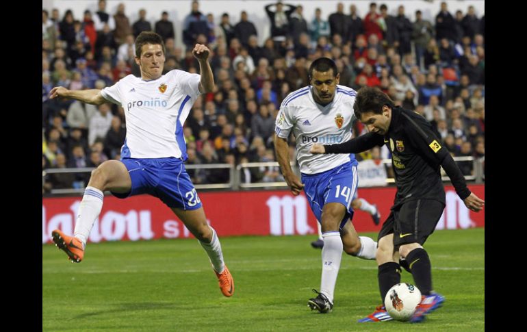 Deportes | Los catalanes vencen 4-1 al Zaragoza y acotan distancias con el líder Barcelona presiona al Real Madrid Los catalanes vencen 4-1 al Zaragoza y acotan distancias con el líder Por: AFP 7 de abril de 2012 - 14:46 hs Lionel Messi (der.) se hizo presente con dos goles en el partido. REUTERS / ZARAGOZA, ESPAÑA (07/ABR/2012).- El Barcelona remontó para terminar imponiéndose por 4-1 en Zaragoza, este sábado en la 32ª jornada de la Liga española, en un partido donde volvió a brillar el argentino Lionel Messi, con un 'doblete' con el que se presiona al líder Real Madrid, que recibe el domingo al Valencia. Antes de ese encuentro en el Santiago Bernabeu de la capital española, el Barça se acercó provisionalmente a tres puntos de su gran rival, que tiene la posibilidad de volver a colocarse a seis si consigue el triunfo contra los jugadores que dirige Unai Emery. El Zaragoza, ex colista de la Liga y actualmente 18º, todavía en zona de descenso, no puso las cosas fáciles e incluso se adelantó en el 30 por medio de Carlos Aranda, pero el equipo azulgrana remontó gracias a los tantos de Carles Puyol (36), los dos de Messi (39, 86 de penal) y uno de Pedro Rodríguez (90+2). Con este 'doblete' en el estadio de La Romareda, la 'Pulga' pasa a comandar provisionalmente la tabla de goleadores de la Liga española, con un total de 38, uno más que el portugués Cristiano Ronaldo (37). La semana ha sido por lo tanto muy positiva para el Barça, que el martes ganó 3-1 al Milan italiano y se clasificó para las semifinales de la Liga de Campeones, donde tendrá al Chelsea inglés como rival. Messi, que firmó también dos tantos -ambos de penal- en ese encuentro, es además líder de la tabla de goleadores de la 'Champions', con catorce. En el resto de partidos del día, destacó el serio correctivo que sufrió el Osasuna en el terreno del Rayo Vallecano (6-0), mientras que el mexicano Carlos Vela consiguió dos tantos para que la Real Sociedad empatara 2-2 en su desplazamiento al campo del Espanyol. Temas Futbol Español Futbol Internacional Barcelona Lee También México busca frenar el paso perfecto de Argentina en Mundial Sub-20 Lista actualizada de selecciones que ya clasificaron al Mundial 2026 Mundial 2026 traerá derrama millonaria al país ¿Dónde ver EN VIVO el partido amistoso México vs Colombia? Recibe las últimas noticias en tu e-mail Todo lo que necesitas saber para comenzar tu día Registrarse implica aceptar los Términos y Condiciones