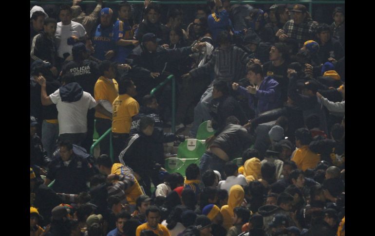 Deportes | Los aficionados de ambos equipos tuvieron un altercado entre ellos y con policías Barras de Tigres y Santos se enfrentan Los aficionados de ambos equipos tuvieron un altercado entre ellos y con policías Por: SUN 9 de diciembre de 2011 - 06:56 hs TORREÓN, COAHUILA (09/DIC/2011).- La violencia en las gradas fue otra vez protagonista en el estadio Corona. Como si se tratara de un guión, de nuevo, los aficionados de Tigres y Santos, además de la policía, se enfrascaron en dimes y diretes que llegaron incluso hasta las pedradas. Durante la salida de la barra de los felinos Libres y Lokos hubo golpes entre los integrantes del grupo de animación y la policía. Los aficionados regiomontanos se negaban a salir del inmueble de Torreón, luego de que el dispositivo empleado por los guardianes del orden incluyó la salida temprana de los seguidores visitantes. Además, una vez afuera del recinto, se encontraron los barristas de ambas escuadras, y con los cánticos de los Tigres, quienes celebraron el triunfo, se encendieron los ánimos de los locales, lo que desencadenó la bronca hasta llegar a las pedradas. Efectivos de seguridad intervinieron, aunque no pudieron evitar que algunos asistentes a la final de ida del futbol mexicano resultaran lastimados y mostraran sangre en la cabeza, producto de los impactos con los proyectiles. “Vamos a ir con la cara en alto” No se siente muerto, al contrario, siente que Santos está vivo, por lo que ya manda a los suyos a ir con la frente en alto a coronarse en el estadio Universitario. “Se le puede dar vuelta, estamos a un gol, ellos son los presionados y nos toca ir al todo por el todo, no podemos especular. Tenemos que ir por todo”, reta Benjamín Galindo. El técnico lagunero acepta que la tarjeta roja que vio Juan Pablo Rodríguez determinó el resto del encuentro en el estadio Corona, ya que Tigres, al verse en ventaja, prefirió controlar la pelota, lo cual, El Maestro agradece, porque no se fue con una mayor desventaja. “Te cambia tus planes la expulsión. Estábamos en casa, 11 contra 11 y ellos encuentran el gol. Tuvimos una o dos, estábamos dentro de lo que fue el equipo. Tienes que hacer ajustes para mantenerte y nunca cambiaron y fue mucho mejor, porque nos acomodamos. Mi equipo jugó con determinación, no regalando. No es lo mismo perder 1-0 que 2-0”. Y de inmediato, lanza la consigna: “Debemos ir con la frente en alto. Nos quedan 90 minutos para jugarnos el todo por el todo. Y así será”. Temas Futbol Mexicano Santos Laguna Tigres Liguilla Apertura 2011 Lee También Futbol hoy 16 de octubre de 2025: ¿Dónde ver los partidos en vivo? Atlas Femenil paga caro un error y ve alejarse la Liguilla ante América Cada partido será una final para nosotros: Diego Cocca México encadena cuatro partidos sin ganar, algo que no sucedía desde 2021 Recibe las últimas noticias en tu e-mail Todo lo que necesitas saber para comenzar tu día Registrarse implica aceptar los Términos y Condiciones