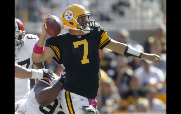 Deportes | El debut de Roethlisberger en la temporada es con una victoria sobre los Cafés 'Big Ben' regresa con un triunfo El debut de Roethlisberger en la temporada es con una victoria sobre los Cafés 28-10 Por: AP 17 de octubre de 2010 - 15:03 hs Ben Roethlisberger (7) regresó a los emparrillados con una victoria. AP / PITTSBURGH, PENNSYLVANIA (17/OCT/2010).- Ben Roethlisberger, ovacionado en su primer juego en nueve meses y medio, se sacudió el herrumbre de una suspensión de cuatro partidos y lanzó el domingo tres pases de touchdown mientras los Acereros de Pittsburgh vencieron 28-10 a los Cafés de Cleveland. Cuando los Acereros (4-1) ganaban 7-3 pero estaban en su propia yarda 4 en los últimos momentos del tercer período, Roethlisberger -aportando a su equipo la habilidad que no tuvo en su ausencia- completó en jugadas sucesivas un pase de 50 yardas con Mike Wallace y otro de 36 con Heath Miller. Tres jugadas después, Hines Ward se lanzó con fuerza y eludió dos posibles tacleadas al atrapar un pase de ocho yardas para lograr el touchdown que puso el marcador en 14-3 y le dio a la defensiva de los Acereros los puntos necesarios para apuntalar su dominio. La marca de los Cafés disminuyó a 1-5. Temas NFL Futbol Americano Cafés de Cleveland Acereros de Pittsburgh Recibe las últimas noticias en tu e-mail Todo lo que necesitas saber para comenzar tu día Registrarse implica aceptar los Términos y Condiciones