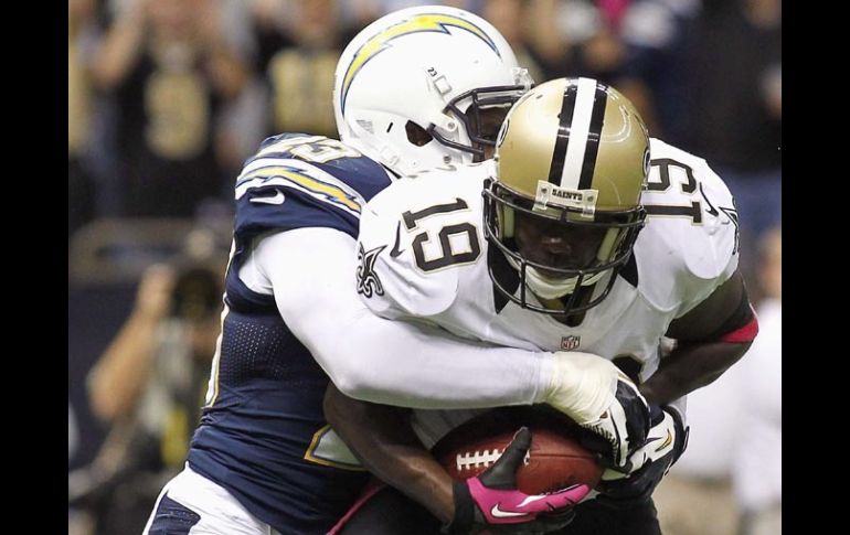 Deportes | El equipo de Nueva Orleans consigue su primera victoria en la temporada Brees establece marca y Santos vencen a Cargadores Nueva Orleans gana por primera vez en la temporada al derrotar 31-24 a los Chargers de San Diego Por: AP 7 de octubre de 2012 - 22:33 hs Henderson (19) de Nueva Orleans durante una jugada contra el mariscal de campo de San Diego Quentin Jammer. REUTERS / NUEVA ORLEANS, ESTADOS UNIDOS (07/OCT/2012).- Drew Brees quebró una marca de medio siglo en la NFL cuando lanzó un pase de anotación en su 48vo partido consecutivo, y los Saints de Nueva Orleáns ganaron el domingo por primera vez en la temporada al derrotar 31-24 a los Chargers de San Diego. Brees completó un pase de 40 yardas con Devery Henderson y opacó la marca de 47 partidos consecutivos con un pase de touchdown que Johnny Unitas estableció de 1956 a 1960. Brees también conectó tres lanzamientos de anotación con Marques Colston que le otorgaron a éste el récord de franquicia con 52 atrapadas de touchdown con los Saints (1-4). A solicitud de Brees, la NFL aceptó que el entrenador Sean Payton, el entrenador asistente Joe Vitt y el gerente general Mickey Loomis asistieran al partido. Los tres están suspendidos por una investigación de la NFL sobre recompensas a jugadores que lesionaran a contrarios. El hijo de Johnny Unitas, Joe, también atestiguaron la actuación de Brees, que lanzó para 370 yardas. Philip Rivers avanzó por aire 354 yardas con dos touchdowns por los Chargers (3-2), pero tuvo una intercepción y un balón perdido en el último período. Temas NFL Futbol Americano Cargadores de San Diego Santos de Nueva Orleans Lee También Chiapas vive una jornada violenta por bloqueos La NFL suspende a Brian Branch por golpear a jugador de Chiefs NFL: Resultados del Monday Night Football Futbol hoy 14 de octubre de 2025: ¿Dónde ver los partidos en vivo? Recibe las últimas noticias en tu e-mail Todo lo que necesitas saber para comenzar tu día Registrarse implica aceptar los Términos y Condiciones