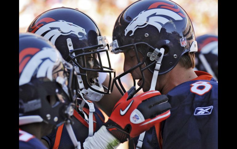 Deportes | Gran debut de la primera selección Demaryius Thomas Broncos ‘hunden’ a los Halcones Marinos Kyle Orton lanzó el domingo para ganancia de 307 yardas y Demaryius Thomas atrapó ocho pases uno de ellos de anotación Por: AP 19 de septiembre de 2010 - 18:59 hs El novato Demaryius Thomas (izq) felicita a Kyle Orton tras una anotación. AP / DENVER COLORADO (19/SEP/2010).- Kyle Orton lanzó el domingo para ganancia de 307 yardas y dos anotaciones mientras el primer seleccionado del draft Demaryius Thomas atrapó ocho pases para avance de 97 yardas con una anotación en la paliza de los Broncos de Denver por 31-14 contra los Halcones Marinos de Seattle. Orton también lanzó un pase para anotación a Eddie Royal su primera recepción para anotación desde el 2008 en un encuentro en que los Broncos dominaron a los Halcones Marinos (1-1) desde el inicio e impidieron acercamientos en la segunda mitad. Los Broncos (1-1) ganaron su 11er juego inaugural en casa en forma consecutiva y pusieron esa foja en 24-3 contando desde 1984, la mejor en los deportes profesionales de Estados Unidos en ese lapso. Thomas, quien se perdió toda la pretemporada y el juego de inicio de la campaña la semana pasada al agravársele una lesión en el pie izquierdo el mes pasado durante una pelea, anotó en pase de 21 yardas de Orton para poner el marcador en 31-7 y concretar un excelente debut. Temas NFL Futbol Americano Broncos de Denver Halcones Marinos de Seattle Recibe las últimas noticias en tu e-mail Todo lo que necesitas saber para comenzar tu día Registrarse implica aceptar los Términos y Condiciones