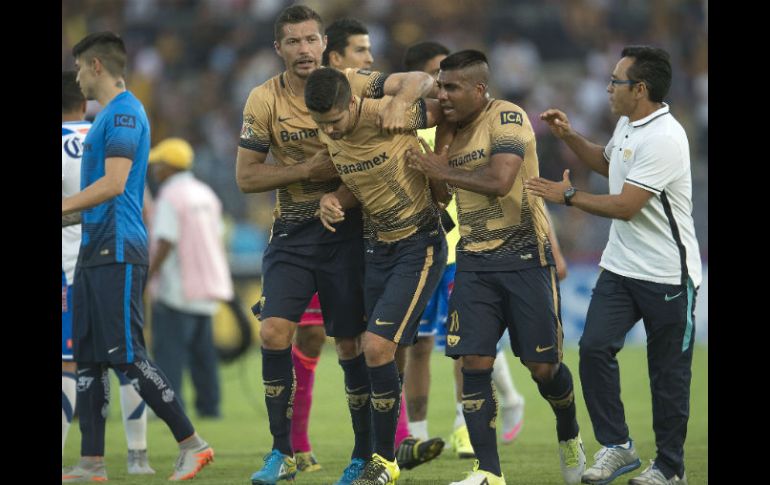 Deportes | Los jugadores se encararon tras la derrota de su escuadra Cabrera y Britos discuten al final del Puebla-Pumas Los jugadores se encararon tras la derrota de su escuadra Por: SUN 9 de agosto de 2015 - 19:22 hs Pumas cayó 3-2 en su visita a Puebla en el estadio Universitario de la BUAP. MEXSPORT / O. Aguilar PUEBLA (09/AGO/2015).- Cuando terminó el encuentro entre Puebla y Pumas de la jornada 3 del Apertura 2015, se presentó un hecho poco común. Los jugadores universitarios DavidCabrera y Matías Britos se encararon tras la derrota de su escuadra. Jugadores como el arquero Alfredo Saldívar y Roberto Ramírez tuvieron que acercarse a separarlos, porque había reclamos muy airados por parte de Cabrera sobre Britos, y estuvieron a punto de llegar a los golpes en plena cancha. Incluso, tuvo que aparecer el delantero Dante López para retirar de manera definitiva de ese lugar a David Cabrera, y así terminar con el conato de bronca entre los jugadores. Pumas cayó 3-2 en su visita a Puebla en el estadio Universitario de la BUAP. Temas Futbol Mexicano Pumas de la UNAM Camoteros de Puebla Liga MX Apertura 2015 Recibe las últimas noticias en tu e-mail Todo lo que necesitas saber para comenzar tu día Registrarse implica aceptar los Términos y Condiciones