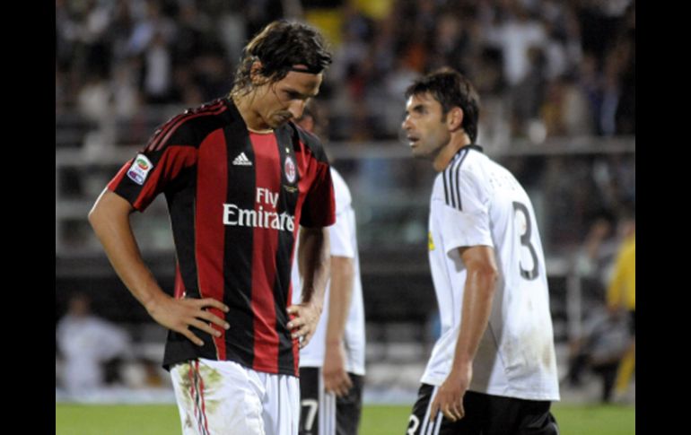 Deportes | Ibrahimovic falló un penal al minuto 86 Cae Milan en debut de Zlatan Ibrahimovic y Robinho Milán se quedó con tres puntos en el cuarto peldaño, Cesena se ubicó en el segundo lugar con cuatro unidades. Por: NTX 11 de septiembre de 2010 - 17:01 hs Zlatan Ibrahimovic despuès de fallar un penal ante el Cesena. AP / Roma, (11/09/2010).- Con el debut de sus refuerzos de lujo, el sueco Zlatan Ibrahimovic y el brasileño Robson de Souza "Robinho", el AC Milán cayó 0-2 ante el modesto y recién ascendido Cesena, en actividad de la fecha dos de la Liga de Italia. El conjunto rossoneri no pudo imponer su condición de favorito en el Estadio D. Manuzzi y con los goles de Erjon Bogdani, al minuto 31 y Emanuele Giaccherini, al 44, salió sin puntos en lo que fue el resultado sorpresa de la jornada sabatina del "calcio". Con el descalabro, el equipo lombardo se quedó con tres puntos en el cuarto peldaño, a la espera que este domingo culmine la fecha dos del certamen, por su parte el Cesena, se ubicó en el segundo lugar con cuatro unidades. El estratega Massimiliano Allegri puso desde el principio a Ibrahimovic, quien tuvo un debut amargo pues además de no rendir lo esperado en el cotejo, falló un penal al minuto 86 en lo que pudo haber sido su primer gol oficial con su nuevo equipo. Robinho, por su parte, entró de cambio al minuto 56, en lugar de su compatriota Ronaldo de Assis Moreira "Ronaldinho", lo que sorprendió pues los rossoneri buscaban la igualdad. La apertura en el marcador llegó pasada la media hora de juego, luego que Bogdani impactó el esférico con la cabeza desde el corazón del área para vencer al cancerbero Christian Abbiati. Antes del descanso, el Cesena anotó el segundo gol del cotejo y a la postre definitivo cuando Giaccherini sacó potente disparo de zurda desde los linderos del área, en una jugada de contragolpe donde Bogdani dio la asistencia. El AC Milán insistió en el segundo lapso en busca de acortar distancias con disparos de larga distancia, pero ni "Ibra", Ronaldinho, Alexandre Pato y Robinho, fueron capaces de batir al guardameta Francesco Antonioli. A continuación los resultados de este sábado, correspondientes a la jornada dos de la Liga de Italia: Inter Milán 2-1 Udinese Cagliari 5-1 AS Roma Cesena 2-0 AC Milán Temas Futbol italiano Futbol Internacional AC Milán Recibe las últimas noticias en tu e-mail Todo lo que necesitas saber para comenzar tu día Registrarse implica aceptar los Términos y Condiciones