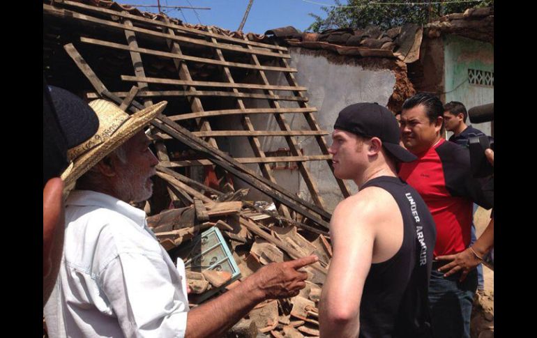 Deportes | El boxeador jalisciense va y trabajo con las comunidades golpeadas por 'Manuel' 'Canelo' Álvarez da apoyos en Guerrero El boxeador jalisciense va y trabajo con las comunidades golpeadas por 'Manuel' Por: SUN 1 de octubre de 2013 - 19:22 hs Saúl Álvarez recibe explicaciones durante su visita a Guerrero. ESPECIAL / MÉXICO, D.F. (01/OCT/2013).- El boxeador mexicano Saúl "Canelo" Álvarez visitó uno de los 48 municipios del estado de Guerrero afectados por la tormenta tropical "Manuel", precipitaciones que cayeron precisamente cuandoél estaba peleando en Las Vegas, Nevada. En compañía de sus dirigentes Chepo Reynoso y Edison Reynoso, el ídolo mexicano visitó a damnificados de Quechultenango para entregarles material de construcción, con lo que se levantará 85 casas y reconstruirá 3 escuelas de este municipio, obra que durará aproximadamente dos meses. Saúl Álvarez ayudó a descargar el material, tomó la pala y escuchó todos los requerimientos de los pobladores que le agradecieron su apoyo en estos momentos tan difíciles. Igual recorrió algunas calles y atestiguó como el desbordamiento de dos ríos arrasó con todo lo que había a su paso. El peleador mexicano se encargará personalmente de supervisar los avances de esta construcción para que todo esté listo lo antes posible. Temas Box Damnificados Boxeo Guerrero Saúl Canelo Álvarez Lee También SMN advierte: Tormenta Raymond dejará lluvias intensas y fuertes vientos en 4 estados Se encienden las alarmas Portada: Dr. José Magaña, embajador de Arkana México Sociales: André e Isabella reciben la Primera Comunión en familia Recibe las últimas noticias en tu e-mail Todo lo que necesitas saber para comenzar tu día Registrarse implica aceptar los Términos y Condiciones