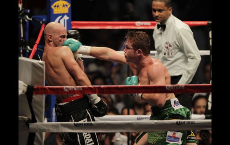 Deportes | El jalisciense gana por nocáut técnico en el décimo segundo asalto 'Canelo' Álvarez retiene el título superwelter El jalisciense gana por nocáut técnico en el décimo segundo asalto Por: EFE 18 de junio de 2011 - 22:25 hs 'Canelo' Álvarez conecta un derechazo sobre la cara de Rhodes durante el combate. S. NÚÑEZ / TLAJOMULCO, JALISCO (18/JUN/2011).- El mexicano Saúl 'Canelo' Álvarez venció por nocáut técnico en el duodécimo asalto al británico Ryan Rhodes para retener el título superwelter del Consejo Mundial de Boxeo. En la primera defensa de su faja, Álvarez sumó el trigésimo séptimo triunfo seguido de su carrera, al mostrar una gran velocidad y exactitud en sus golpes ante un rival muy voluntarioso, que a veces hizo daño con su 'jab', y no se dio por vencido hasta que lo derribaron. Este sábado, en la Arena VFG de Tlajomulco 'Canelo' de 20 años, marcó diferencia a favor desde el primer asalto; sus combinaciones llegaron a la anatomía de Rhodes, quien resultó muy resistente. A veces de guardia zurda, otras de derecha, Rhodes buscó la iniciativa por momentos y pegó algunos buenos golpes al mexicano, sobretodo en las mangas siete y nueve, pero en la décima recibió una andanada de golpes que hicieron pensar en un final cercano. Rhodes, que sufrió su quinta derrota con 41 triunfos, resurgió y se mantuvo de pie en el undécimo asalto. Sin embargo, en la última, estimulado por sus seguidores, Álvarez salió a terminar por la vía rápida y pronto hizo estremecer al europeo, con el pómulo izquierdo hinchado por los golpes y el físico diezmado. Entró el mexicano con combinaciones de izquierda y derecha desde la media distancia y a poco más de dos minutos para el final conectó varios golpes que obligaron al árbitro a decretar el fin del combate. Aunque confirmó que tiene pendientes, como la mejoría de su defensa y algunos aspectos técnicos que sólo dominará con más experiencia, el mexicano mostró crecimiento y mantuvo su invicto, que lo confirma como el boxeador llamado a convertirse en uno de los grandes del pugilismo mexicano. Temas CMB Boxeo Saúl Canelo Álvarez Lee También Revelan principal causa de la derrota de Canelo Álvarez ante Crawford Rafael Márquez elogia la Academia AGA México vs Colombia: ¿Quién ganará el partido según la IA? Peleas de box hoy sábado 11 de octubre: horarios y dónde ver la cartelera completa Recibe las últimas noticias en tu e-mail Todo lo que necesitas saber para comenzar tu día Registrarse implica aceptar los Términos y Condiciones
