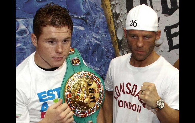 Deportes | Álvarez afirmó que ofrecerá una gran pelea contra Ryan Rhodes 'Canelo' cumple su sueño de pelear en su tierra Álvarez afirmó que ofrecerá una gran pelea contra Ryan Rhodes Por: NTX 16 de junio de 2011 - 19:45 hs 'Canelo' y Rhodes, listos para la gran pelea. MEXSPORT / GUADALAJARA, JALISCO (16/JUN/2011).- El mexicano Saúl Alvarez se mostró feliz de exponer el título mundial superwelter del CMB ante el británico Ryan Rhodes en la ciudad de Guadalajara, 'cumplo mi sueño de pelear como campeón en mi tierra'. El 'Canelo' Alvarez estrenará la corona de las 154 libras del Consejo Mundial de Boxeo, que ganó en marzo ante Matthew Hatton, contra el primer clasificado y retador oficial Ryan Rhodes, en la pelea estelar de la velada sabatina en la arena VFG. 'Estoy contento de que mi primera defensa sea en mi tierra, ante mi gente. Se cumple mi sueño de pelear como campeón del mundo en Guadalajara', comentó el carismático peleador acompañado de su mánager José 'Chepo' Reynoso. El monarca universal reconoce que tendrá una noche complicada contra Rhodes, 'es de guardia zurda, tiene pegada y aguanta golpes. Sobre el ring ganará el mejor y ese soy yo', comentó optimista el pelirrojo peleador. Para la que será su primera exposición del fajín de las 154 libras avalado por el CMB, Alvarez Barragán realizó un campamento de altura de 45 días en la montaña de Big Bear, California, con su entrenador Edison Reynoso. 'Demostraré sobre el ring la fuerte preparación que llevé a cabo en mi campamento de altura. Haré mi pelea conforme a la estrategia que se trabajó para neutralizar a Rhodes', aseveró el monarca mundial. Acerca de la declaración del retador británico de que ganará por la vía del nocaut, el 'Canelo' aseveró: 'le voy a enseñar a respetar arriba del cuadrilátero. En el boxeo se habla sobre el ring y no abajo'. Saúl Alvarez afirmó que ofrecerá una gran pelea contra Ryan Rhodes, 'estoy listo para ganar y convencer. No tengo excusas, hice una gran preparación en Big Bear y convenceré a los aficionados en la arena y a los que vean la pelea por televisión'. Finalmente, mencionó que está obligado a tener una actuación convincente debido a que su pelea contra Rhodes será transmitida por las cadenas de televisión más importantes de Estados Unidos y México. El 'Canelo' y Rhodes asistirán este viernes a la ceremonia de pesaje y exámenes médicos en conocido hotel de la ciudad de Guadalajara. Temas CMB Boxeo Saúl Canelo Álvarez Recibe las últimas noticias en tu e-mail Todo lo que necesitas saber para comenzar tu día Registrarse implica aceptar los Términos y Condiciones