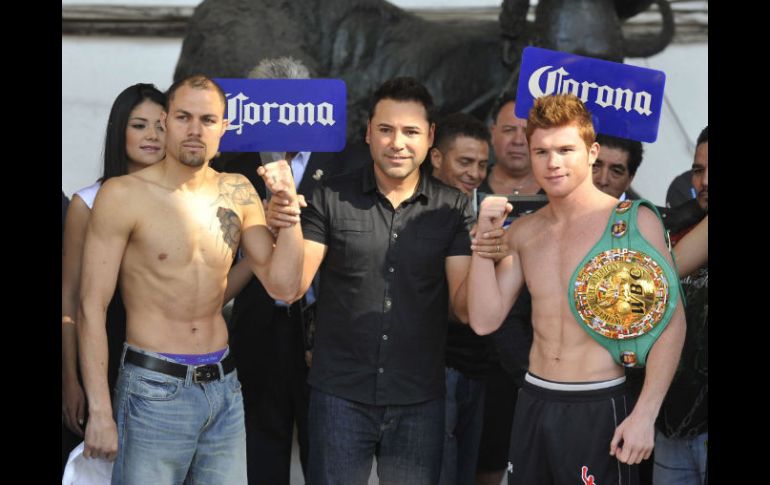 Deportes | Los boxeadores preparan sus guantes para su encuentro en la Plaza de Toros 'Canelo' y Cintrón cumplen con pesaje Los boxeadores preparan sus guantes para su encuentro en la Plaza de Toros Por: EFE 25 de noviembre de 2011 - 16:45 hs El boxeador mexicano Saúl Canelo Álvarez (D), campeón mundial de peso superwelter del CMB, y el puertorriqueño Kermit Cintrón (I).EFE / CIUDAD DE MÉXICO (25/NOV/2011).- El mexicano Saúl 'Canelo' Álvarez, campeón mundial de peso superwelter del Consejo Mundial de Boxeo (CMB), y el puertorriqueño Kermit Cintrón cumplieron hoy con el pesaje oficial un día antes su enfrentamiento, mañana en la Paza de Toros México, sur de la ciudad. Álvarez y Cintrón registraron el mismo peso 69,9 kilogramos, el límite de la división y ambos lo hicieron al primer intento. El mexicano, quien tiene marca de 38 triunfos, 28 por nocaut, un empate y no ha perdido, se dijo confiado en su preparación y aseguró que el público que asista a la pelea será testigo de un "buen espectáculo". Por su parte, el puertorriqueño, quien acumula 33 triunfos, 28 por la vía rápida, cuatro derrotas y un empate, refrendó sus declaraciones de un día anterior y aseguró que viene por el nocaut. En el combate, Álvarez expondrá su título por tercera ocasión luego de que lo ganó el cinco de marzo y de paso protagonizará su cuarta pelea en el año. La Plaza de Toros México es un escenario histórico para el boxeo mexicano donde protagonizaron peleas Raúl 'Ratón' Macías, Rubén 'Púas' Olivares y Julio César Chávez. En la velada que tendrá diez combates destaca la participación de dos boxeadores colombianos Frankin Varela y Samuel Miller, quienes se enfrentarán con boxeadores mexicanos. Varela peleará ante Andrés Gutiérrez en pelea a 10 asaltos en el peso gallo y Miller lo hará frente a Gilberto Ramírez también a diez 'rounds' en el peso medio. Temas Box CMB Boxeo Saúl Canelo Álvarez Lee También Destacan empresarios aportación de Carlos Álvarez Bermejillo No hay que ser ni pesimistas ni optimistas, hay que guardar el equilibrio: Carlos Álvarez Bermejillo Peleas de box hoy sábado 18 de octubre: horarios y dónde ver la cartelera completa Nuevo diseño del ring, ¿adiós boxeo aburrido? Recibe las últimas noticias en tu e-mail Todo lo que necesitas saber para comenzar tu día Registrarse implica aceptar los Términos y Condiciones