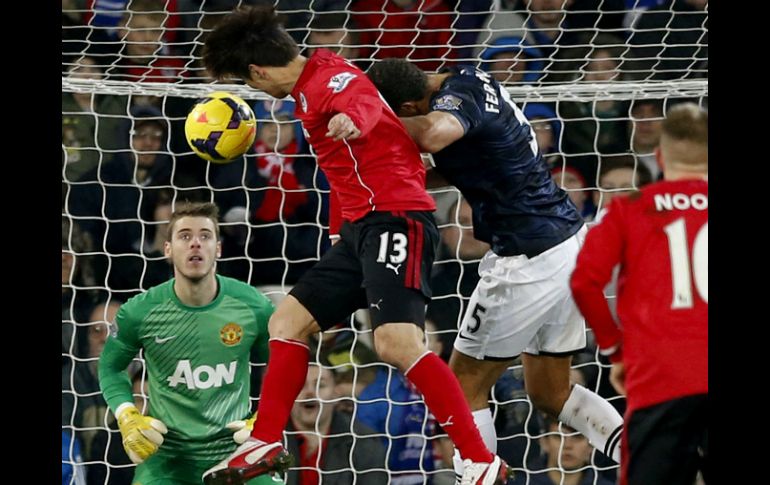 Deportes | Con gol en tiempo añadido, los Red Devils empatan a dos tantos Cardiff arruina la fiesta del Manchester United Con gol en tiempo añadido, los Red Devils empatan a dos tantos Por: EFE 24 de noviembre de 2013 - 11:16 hs Con este cabezazo el cuadro de Manchester vio como se iban los tres puntos. AP / CARDIFF, GALES (24/NOV/2013).- Un gol del surcoreano Bo-Kyung Kim en el tiempo añadido echó por tierra las expectativas de triunfo del Manchester United y llevó la euforia al recién ascendido Cardiff, que salió airoso, con un punto en el bolsillo, de la visita del campeón. El revés aleja aún más del liderato al conjunto de David Moyes, que encarriló el partido al cuarto de hora con un gol de Wayne Rooney a centro del mexicano Javier Hernández. Sin embargo, a la media hora, Fraizer Campbell finalizó un centro de Jordon Mutch para establecer la primera igualada aunque al borde del descuento, una acción a balón parado botada por Rooney fue rematada por el francés Patrice Evra para devolver la ventaja a los visitantes. El United pudo sentenciar, pero el Cardiff se mantuvo con vida y en el tiempo añadido, una falta lateral sacada por Peter Whittihgham fue rematada por Bo-Kyung Kim para batir a David De Gea y poner el empate definitivo. El Manchester United es sexto en la tabla a siete puntos del líder, el Arsenal y a uno del Southampton, quinto y del City, cuarto, que goleó al Tottenham (6-0) liderado por Jesús Navas y el argentino Sergio Kun Agüero. Navas y Agüero marcaron a pares. Un gol en propia puerta del brasileño Sandro y otro anotado por el español Álvaro Negredo completaron el abultado marcador. El Liverpool y el Chelsea comparten la segunda plaza de la Premier con 24 puntos. Dos más que el City y el Southampton y cuatro menos que el Arsenal. Temas Liga Premier Mexicanos en Europa Futbol Internacional Manchester United Javier 'Chicharito' Hernández Recibe las últimas noticias en tu e-mail Todo lo que necesitas saber para comenzar tu día Registrarse implica aceptar los Términos y Condiciones