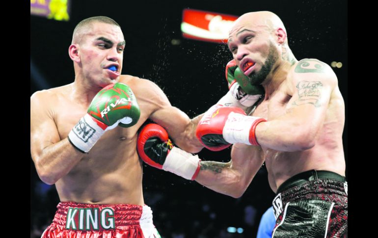 Carlos Molina conecta un gancho de izquierda en el rostro de Ishe Smith, durante su combate del sábado en Las Vegas. AP /