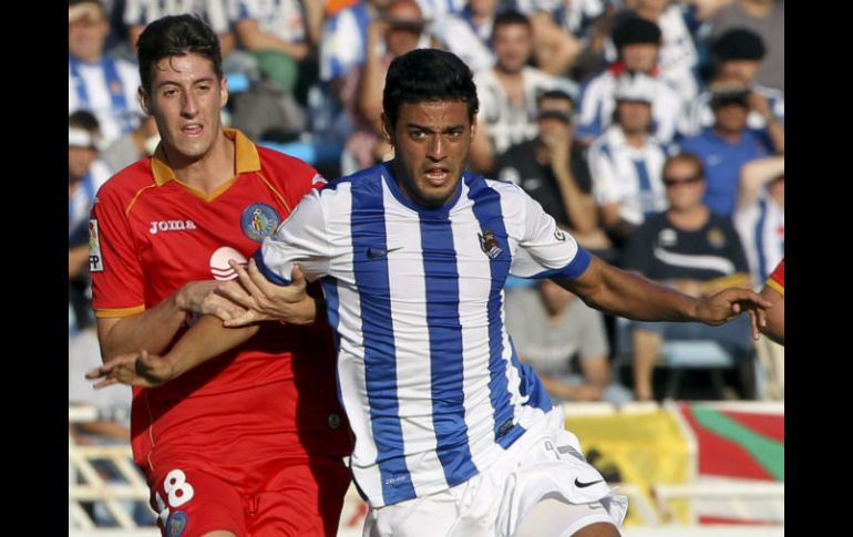Deportes | El mexicano logró el primer tanto de la temporada en el juego ante el Getafe Carlos Vela marca el primer gol de la liga española El mexicano logró el primer tanto de la temporada en el juego ante el Getafe Por: EFE 17 de agosto de 2013 - 12:35 hs SAN SEBASTIÁN, ESPAÑA (17/AGO/2013).- El mexicano Carlos Vela, jugador de la Real Sociedad, marcó el primer gol de la temporada 2013-14 durante el partido que disputa el conjunto vasco ante el Getafe correspondiente a la primera jornada del torneo. Vela logró el 1-0 en el minuto 42 tras aprovechar un gran pase en profundidad del uruguayo Gonzalo "Chory" Castro. El centrocampista superó con una vaselina al portero Miguel Ángel Moyá, quien no pudo hacer nada para evitar el primer tanto del curso en Primera División. Temas Mexicanos en Europa Futbol Español Futbol Internacional Carlos Vela Recibe las últimas noticias en tu e-mail Todo lo que necesitas saber para comenzar tu día Registrarse implica aceptar los Términos y Condiciones
