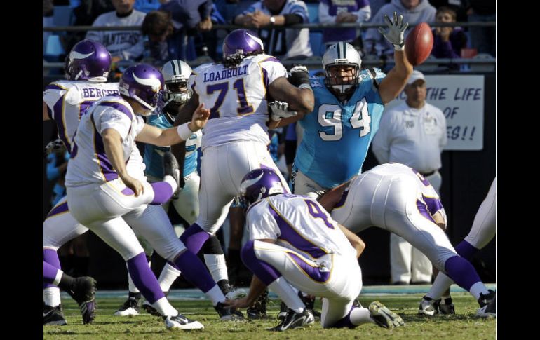 Deportes | Longwell anota gol decisivo que colocó el marcador final 24-21 Carolina pierde ante Vikingos por tres puntos Longwell anota gol decisivo que colocó el marcador final 24-21 Por: AP 30 de octubre de 2011 - 15:11 hs Ryan Longwell (I) patea el balón a casi dos minutos del final del encuentro ante Carolina. AP / CHARLOTTE, CAROLINA DE LA NORTE (30/OCT/2011).- Ryan Longwell metió el domingo un gol de campo de 31 yardas a 2:43 del final y los Vikingos de Minnesota derrotaron 24-21 a las Panteras de Carolina. Cam Newton puso a las Panteras (2-6) en posición de empatar el marcador en los dos últimos minutos. Completó un pase de 44 yardas con Brandon LaFell en cuarta y 15, pero cuando restaban 26 segundos de juego Olindo Mare un gol de campo de 31 yardas que se fue desviado. Adrian Peterson acarreó el balón 162 yardas y anotó dos touchdowns al tiempo que los Vikingos (2-6) dejaron atrás dos derrotas seguidas. Christian Ponder ganó el duelo entre quarterbacks novatos al completar 18 de 28 pases para 236 yardas y un touchdown. Temas NFL Futbol Americano Vikingos de Minnesota Panteras de Carolina Recibe las últimas noticias en tu e-mail Todo lo que necesitas saber para comenzar tu día Registrarse implica aceptar los Términos y Condiciones