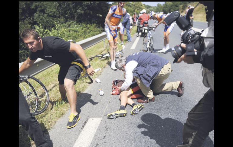 Deportes | Alberto Contador sufre accidente sin daños Cavendish gana su decimosexta etapa en el Tour El quinto día ve ganar al británico por vez primera en esta edición 2011, marcado también por múltiples accidentes Por: AP 7 de julio de 2011 - 03:29 hs El ciclista esloveno Janez Brajkovic es atendido después de una aparatosa caída que sufrió. AP / CAP FREHEL, FRANCIA (07/JUL/2011).- El velocista británico Mark Cavendish ganó el miércoles la accidentada quinta etapa del Tour de Francia en un embalaje masivo, mientras el noruego Thor Hushovd mantuvo la casaca amarilla de puntero en la general. El español Alberto Contador, quien defiende su título, se cayó en uno de los numerosos accidentes pero volvió a la carrera, mientras el esloveno Janez Brajkovic, de RadioSchack, abandonó lastimado. La etapa se disputó sobre 164.5 kilómetros (102 millas) entre Carhaix y Cap Frehel. Cavendish, uno de los mejores velocistas del mundo, sumó así su decimosexta victoria en una etapa de un Tour y primera este año al superar al belga Philippe Gilbert, segundo, y el español José Joaquín Rojas, tercero. "Estoy realmente feliz. Fue un final difícil", afirmó Cavendish, quien corre para el equipo HTC-Highroad. "Le di con todo. Si ganamos no es porque tengamos suerte, sino porque somos buenos". Las posiciones principales no variarán, debido a que la gran mayoría de los ciclistas cruzaron en el pelotón inmediatamente detrás de los velocistas. Hushovd mantiene un segundo de ventaja sobre el australiano Cadel Evans y de cuatro segundos sobre el luxemburgués Frank Schleck. Contador, entre los accidentados La carrera fue accidentada desde el principio y vio caer a varios de los grandes nombres en el pelotón, que se redujo a 195 corredores después de que dos de ellos abandonaron lesionados. "Reinaban los nervios y por eso hay muchos accidentes, ya que hay 200 corredores que quieren estar al frente", comentó Hushovd, quien retuvo la casaca privilegiada por cuarto día consecutivo. Contador se cayó pero se levantó enseguida, con un desgarro en el hombro izquierdo de su casaca del equipo Saxo Bank. El español, tres veces ganador del Tour, se involucró en un choque a los 70 kilómetros (44 millas) y se quitó el casco por un momento, para señalar pronto que estaba bien. El abandono más prominente fue el del esloveno Janez Brajkovic, de RadioSchack, quien chocó un kilómetro y medio (una milla) después. El ciclista de 27 años fue evacuado a un hospital en una ambulancia, donde los médicos determinaron que había sufrido una conmoción leve, dijo el equipo. Su compañero Tevi Leipheimer, de Estados Unidos, también estuvo en un choque pero volvió a correr. Nicki Sorensen embistió la motocicleta de un fotógrafo y patinó, pero pudo retomar el control de la bicicleta. Un choque anterior afectó al francés Sylvain Chavanel y el británico Bradley Wiggins, y otro más involucró al belga Tom Moonen y su compañero Geert Steegmans. Christophe Kern, campeón francés de contrarreloj, abandonó después de un choque. Clasificación de la quinta etapa del Tour de Francia: Pos. Ciclista (PAÍS) Equipo Tiempo 1.- Mark Cavendish (GBR) HTC-Highroad 3:38:32 hrs. 2.- Philippe Gilbert (BEL) Omega Pharma Lotto m.t. 3.- José Joaquin Rojas (ESP) Movistar m.t. 4.- Tony Gallopin (FRA) Cofidis m.t. 5.- Geraint Thomas (GBR) Sky Team m.t. -Clasificación general: 1.- Thor Hushovd (NOR) Garmin Cervélo 17:36:57 hrs. 2.- Cadel Evans (AUT) Leopard Trek a 0:01 seg. 3.- Frank Schleck (LUX) Leopard Trek a 0:04 seg. 4.- David Millar (GBR) Garmin Cervelo a 0:08 seg. 5.- Andreas Klöden (ALE) RadioShack a 0:10 seg Temas Ciclismo Tour de Francia 2011 Lee También Isaac Del Toro gana... ahora en el Gran Piemonte 2025 Isaac del Toro gana otra vez, ahora el Giro dell'Emilia 2025 ¿Actriz que donó un riñón a Selena Gomez, fue invitada a su boda? Isaac del Toro destaca en el Campeonato Mundial de Ciclismo de Ruta Recibe las últimas noticias en tu e-mail Todo lo que necesitas saber para comenzar tu día Registrarse implica aceptar los Términos y Condiciones