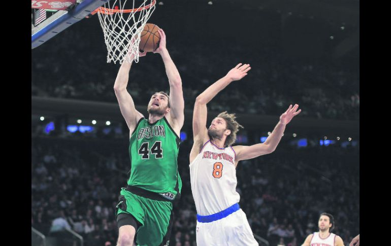 Deportes | NBA. Temporada 2015-2016 Celtics de Boston supera a los Knicks Jae Crowder y Tyler Zeller añadieron 16 puntos cada uno, mientras que los suplentes Evan Turner y Kelly Olynyk también alcanzaron dobles dígitos Por: AP 3 de febrero de 2016 - 00:24 hs Buena racha. Los Celtics consiguieron su quinto triunfo en los últimos seis partidos. AP / J. Jacobson ESTADOS UNIDOS (03/FEB/2016).- Isaiah Thomas anotó 20 puntos y repartió ocho asistencias, y los Celtics de Boston impusieron su voluntad en el cierre del partido al vencer ayer 97-89 a los Knicks de Nueva York. Jae Crowder y Tyler Zeller añadieron 16 puntos cada uno, mientras que los suplentes Evan Turner y Kelly Olynyk también alcanzaron dobles dígitos por unos Celtics más afilados en los últimos 15 minutos. Boston ha ganado cinco de sus últimos seis partidos. Carmelo Anthony consiguió 16 puntos con 14 rebotes, pero apenas embocó cuatro de 16 tiros en la sexta derrota de los Knicks en siete partidos. Robin López añadió 17 puntos con 13 rebotes. En otro encuentro, los Rockets de Houston vencieron 115-102 al Heat de Miami. Houston, que no contó con su pívot titular, Dwight Howard, quien fue suspendido un juego, fue guiado por James Harden, quien consiguió 26 puntos. Temas NBA Basquetbol Celtics de Boston Recibe las últimas noticias en tu e-mail Todo lo que necesitas saber para comenzar tu día Registrarse implica aceptar los Términos y Condiciones