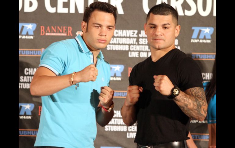 Deportes | El Júnior hará su reaparición en los encordados Chávez Jr, listo para medirse con Vera Julio César Chávez Jr. regresará al ring el próximo 28 de septiembre para enfrentar a Bryan Vera, en lo que será la primera pelea del júnior en 2013 Por: SUN 29 de agosto de 2013 - 20:31 hs Julio César Chávez Jr. (I) en la presentación de su pelea frente a Bryan Vera, la primera del júnior en 2013. ESPECIAL / LOS ÁNGELES, ESTADOS UNIDOS (29/AGO/2013).- El boxeador sinaloense Julio César Chávez Jr. (46-1-1, 32KO) regresará al ring para su primera pelea del 2013 cuando se enfrente al estadounidense Bryan ''The Warrior'' Vera (23-6, 14KO). El duelo está programado para 12 asaltos en el peso supermediano y se realizará el sábado 28 de septiembre en el StubHub Center de Carson, California. “Estoy ansioso de volver al ring y demostrar que puedo volver la cima del boxeo. Tengo mucho tiempo sin pelear y estoy muy contento de que este regreso sea aquí en el sur de California”, destacó Chávez Jr. durante la presentación oficial del combate. Temas Box Boxeo Julio César Chávez Jr. Lee También Peleas de box hoy sábado 11 de octubre: horarios y dónde ver la cartelera completa Se encienden las alarmas ¡No la tiene fácil! Terence Crawford exige una oferta millonaria para volver al ring Recibe las últimas noticias en tu e-mail Todo lo que necesitas saber para comenzar tu día Registrarse implica aceptar los Términos y Condiciones