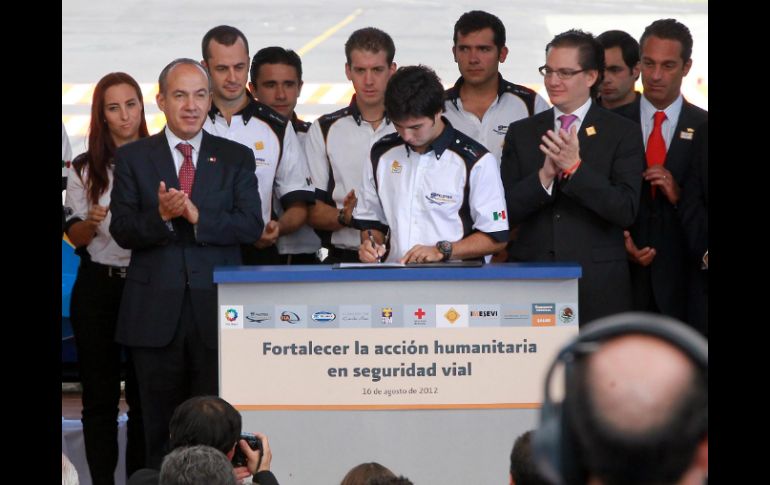 Deportes | El piloto mexicano participó en el programa 'Pilotos por la seguridad vial' ''Checo'' se une a campaña para prevenir accidentes El piloto mexicano participó en 'Pilotos por la seguridad vial', programa encabezado por el Presidente Felipe Calderón para evitar accidentes Por: EL INFORMADOR 16 de agosto de 2012 - 12:10 hs CIUDAD DE MÉXICO ( 16/AGO/2012).- El piloto de Sauber, Sergio 'Checo' Pérez participó en la presentación del programa 'Pilotos por la seguridad vial', acto encabezado por el Presidente de Mexico, Felipe Calderón, y que busca concienciar a los automovilistas para evitar accidentes. Al final del evento, Calderón condujo un automóvil acompañado de Pérez como copiloto, que se denominó recorrido por la seguridad vial, mientras por un altoparlante se iban anunciando las medidas de seguridad necesarias para manejar. Tras la presentación, el piloto mexicano ha dicho que el objetivo personal y del equipo es alcanzar una victoria en las nueve carreras que le restan al campeonato 2012. "El objetivo del equipo es que pueda llegar el primer triunfo y también el mío y espero conseguirla en lo que resta de la temporada", ha declarado Pérez en conferencia de prensa. "El coche ha estado competitivo y no hay por qué no pensar en grande para el cierre de temporada", ha añadido el piloto, que ha señalado que en las ultimas carreras los problemas en la calificación les afectaron para obtener un podio. "Nos ha fallado la calificación y es en eso en lo que tenemos que mejorar", ha señalado 'Checo', noveno en la clasificación de pilotos de F1 con 47 puntos. Pérez, que cumple su segunda temporada en F1, ha dicho que siempre quiere ganar y que por eso quiere contar con las mejores armas para pelear por el triunfo. "Sauber me ha dado un gran coche este año; la temporada que sigue no sé dónde estaré, pero quiero estar (en un equipo) donde pueda ganar carreras", ha apuntado. Con información de Efe y Notimex Temas Automovilismo Sergio Pérez Sauber Lee También La F1 cambiaría formato de la qualy por culpa de Checo Pérez y Cadillac KIVA Inversión inmobiliaria integral presenta Atriva, esencia viva Sociales: El Informador inicia una nueva etapa con la moderna imprenta "Doña Stella" IberoMedia Global realiza su primer Encuentro Empresarial Internacional Recibe las últimas noticias en tu e-mail Todo lo que necesitas saber para comenzar tu día Registrarse implica aceptar los Términos y Condiciones