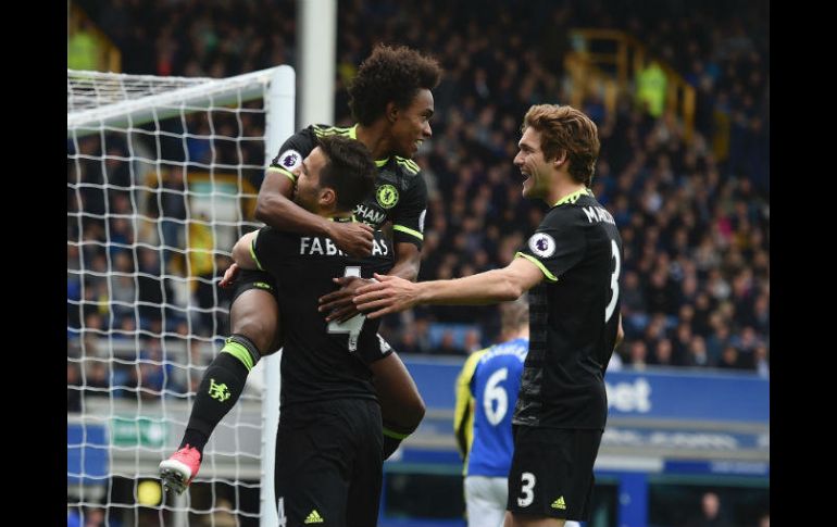LONDRES, INGLATERRA (30/ABR/2017).- El Chelsea consolidó su liderato en la liga inglesa de futbol al vencer por 3-0 en campo del Everton (7º), este domingo en una 35ª jornada que no aprovecharon los dos equipos de Manchester, ya que el United empató en casa (1-1) con el Swansea, mientras que el City también igualó en campo del Middlesbrough, que están en zona de descenso.Los tantos del español Pedro Rodríguez (al minuto 66), Gary Cahill (79) y el brasileño Willian (86) permitieron al Chelsea colocarse de forma provisional con siete puntos de ventaja sobre el segundo, Tottenham, que recibe este domingo al Arsenal, sexto clasificado.El canario Pedro, cuando quedaba menos de media hora, pudo encontrar puerta para el Chelsea, que no lograba sorprender al Everton.El ex jugador del Barcelona recibió un balón fuera del área, de espaldas a portería, se dio la vuelta y conectó un disparo que se coló por la escuadra derecha del portero rival."Tuvimos mucha paciencia para golpear en el momento adecuado. Merecimos ganar", afirmó el entrenador italiano del Chelsea, Antonio Conte."Marcamos un gol fantástico con Pedro. Eso nos da mucha confianza", añadió el técnico.Everton no se pudo levantar tras ese gol y llegaron después los tantos de Cahill, que recogió un golpe franco mal despejado (79), y después de Willian, tras un centro de Cesc Fábregas (86).Antonio Conte y sus hombres se acercan cada vez más al título, con cuatro partidos a disputar, tres de ellos en Stamford Bridge, con rivales como Middlesbrough, West Bromwich, Watford y Sunderland, que ya está descendido."La victoria fue convincente pero tuvimos que trabajar duro para conseguirla", afirmó Cahill al final del partido."El gol de Pedro fue especial. A veces necesitas un poco de clase para sorprender al rival, y eso es lo que hizo él hoy. Es un gran resultado para nosotros", añadió el defensa inglés.