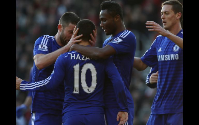 Deportes | Esto tras la primera vuelta, al igualar 1-1 contra Southampton Chelsea empata; sigue líder en Liga Premier Esto tras la primera vuelta, al igualar 1-1 contra Southampton, en juego correspondiente a la jornada 19 Por: NTX 28 de diciembre de 2014 - 11:55 hs El equipo que dirige el portugués José Mourihno sigue en la cima de la clasificación con 46 unidades. AP / T. Ireland LONDRES, INGLATERRA (28/DIC/2014).- Chelsea rescató un punto fuera de casa y terminó como líder de la Liga Premier inglesa tras la primera vuelta, al igualar 1-1 contra Southampton, en juego correspondiente a la jornada 19 y que se realizó este domingo en el estadio St. Mary´s. Aunque parecía que los "blues" tenían controlado el encuentro, apareció el centrocampista senegalés Sadio Mané para abrir el marcador ante la alegría de la afición local en el minuto 17, con la asistencia del serbio Dusan Tadic. Sin embargo, reaccionó la visita y el centrocampista belga Eden Hazard consiguió la paridad tras jugada personal dentro del área, luego de una asistencia del español Francesc Fabregas, cuando expiraba el primer tiempo, marcador que no se modificó para la repartición de unidades. Así, el equipo que dirige el portugués José Mourihno sigue en la cima de la clasificación con 46 unidades, apenas tres de ventaja sobre Manchester City, mientras que Southampton alcanzó las 33 en la cuarta plaza, dentro de puestos de competición europea. Temas Liga Premier Futbol Internacional Futbol Inglés Chelsea José Mourinho Lee También México listo para un nuevo desafío en el Mundial Sub-17 Femenil Portada: Dr. José Magaña, embajador de Arkana México Hamás dice que recibió garantías de que la guerra en Gaza terminó Todas las selecciones que han calificado al Mundial 2026 hasta hoy Recibe las últimas noticias en tu e-mail Todo lo que necesitas saber para comenzar tu día Registrarse implica aceptar los Términos y Condiciones