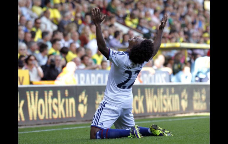 Deportes | El equipo Blue se impone por 3-1 al Norwich City Chelsea gana en los últimos minutos El equipo Blue se impone por 3-1 al Norwich City Por: AFP 6 de octubre de 2013 - 10:31 hs El cuadro londinense tuvo un sufrido triunfo. AFP / LONDRES, INGLATERRA (06/OCT/2013).- El Chelsea derrotó al Norwich City por 3-1 este domingo, una victoria que le aúpa a la tercera posición provisional de la clasificación, a la espera de lo que haga después el Tottenham. El brasileño Oscar (4) abrió el marcador para los jugadores de José Mourinho, pero los locales empataron por medio del irlandés Anthony Pilkington (68). En el tramo final del encuentro, los goles del belga Eden Hazard (85) y del brasileño Willian (86) dieron un sufrido triunfo a los Blues, que remontan posiciones en la clasificación tras un inicio de temporada irregular. El Chelsea se coloca en la tercera posición provisional con 14 puntos, a dos del líder Liverpool y uno del Arsenal, aunque el equipo londinense aún tiene que jugar este domingo en la cancha del West Bromwich (décimo segundo). Al Chelsea podría adelantarle el Tottenham (sexto con 13 puntos), que jugará en el último partido de la séptima jornada de la Premier League contra el West Ham (décimo octavo). El sábado, el Liverpool tomó el mando de la clasificación tras ganar 3-1 al Crystal Palace, con un gol del uruguayo Luis Suárez, y los dos equipos de Manchester se dieron una cura de confianza: el City (quinto) derrotando al Everton (séptimo) por 3-1 y el United (noveno) remontando ante el Sunderland (vigésimo), por 2-1. -- Resultados de la séptima jornada de la Premier League: - Sábado: Manchester City - Everton 3 - 1 Cardiff City - Newcastle 1 - 2 Liverpool - Crystal Palace 3 - 1 Hull City - Aston Villa 0 - 0 Fulham - Stoke City 1 - 0 Sunderland - Manchester United 1 - 2 - Domingo: Southampton - Swansea City 2 - 0 Norwich City - Chelsea 1 - 3 (15h00 GMT) West Bromwich - Arsenal Tottenham - West Ham Temas Liga Premier Futbol Internacional Chelsea Recibe las últimas noticias en tu e-mail Todo lo que necesitas saber para comenzar tu día Registrarse implica aceptar los Términos y Condiciones