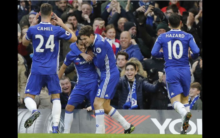 LONDRES INGLATERRA, (26/DIC/2016).- La escuadra de Chelsea venció por contundente marcador de 3-0 al conjunto de Bournemouth en duelo de la jornada 18 de la Liga Premier de Inglaterra, tras lo cual consolidó su lugar como líder absoluto de la competición.El equipo dirigido por el estratega italiano Antonio Conte sigue mostrándose sólido en el torneo local, donde cerrará el año en el primer lugar con 46 unidades tras registrar 15 victorias, un empate y sólo dos derrotas.Los Blues aprovecharon su condición de local para vencer en el estadio de Stamford Bridge a la discreta escuadra de Bournemouth con dos tantos del delantero español Pedro, a los minutos 23 y 92, y uno más del mediocampista belga Eden Hazard, al 48.El equipo londinense arribó al compromiso de la jornada 18 con dudas en la parte ofensiva luego que su delantero estelar y líder de goleo en la Liga Premier con 13 tantos, el español Diego Costa, no pudiera participar en el encuentro debido a una suspensión, aunque en su lugar Pedro pudo cumplir con la cuota en ofensiva.Con esta victoria, Chelsea se aleja de sus más cercanos perseguidores en la parte alta de la tabla al ubicarse a nueve puntos de Arsenal y Liverpool, quienes están empatados en la segunda plaza con 37 unidades, aunque los Reds podrían recortar la distancia en su duelo de mañana ante Stoke City.En otro partido destacado del llamado "boxing day", Manchester United venció como local 3-1 a la escuadra de Sunderland con una actuación destacada del delantero sueco Zlatan Ibrahimovic, quien participó en los tres tantos de los Red Devils con dos asistencias y una anotación.El triunfo ante Sunderland permitió al equipo dirigido por el portugués José Mourinho mantenerse en la pelea por los puestos de competición europea, al ubicarse en la sexta posición del torneo con 33 unidades.
