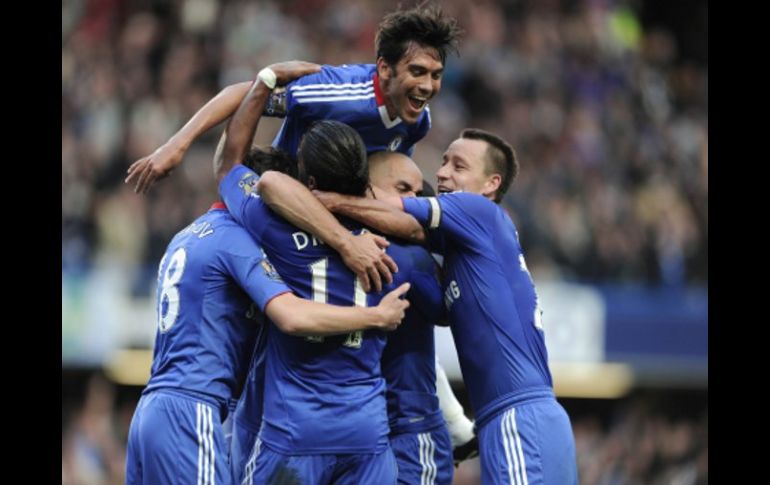 Los jugadores del Chelsea se reunen para festejar la victoria del equipo. REUTERS  /