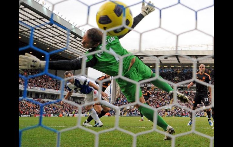 Branislav Ivanovic, del Chelsea, anota el gol de la victoria para su equipo en partido ante el Blackburn. AFP  /