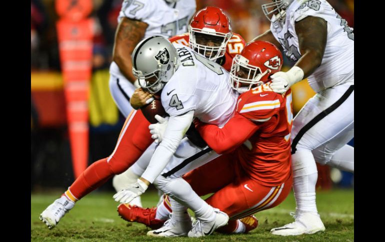 KANSAS CITY, ESTADOS UNIDOS (08/DIC/2016).- Tyreek Hill logró un touchdown mediante una recepción y otro en un regreso de despeje, para que los Chiefs de Kansas City vencieran el jueves 21-13 a los Raiders de Oakland, con lo que tomaron el control del primer puesto en la División Oeste de la Conferencia Americana.Los Chiefs anularon al quarterback Derek Carr para conseguir el valioso triunfo.Charcandrick West logró también un acarreo de anotación por Kansas City (10-3), que alcanzó en la punta divisional a Oakland (10-3) pero tiene a su favor el criterio de desempate, al haber conseguido dos triunfos sobre su acérrimo rival.Carr completó apenas 17 de 41 pases para 117 yardas. Pero esas grises estadísticas no fueron totalmente su culpa.Seth Roberts soltó prácticamente todos los envíos del mariscal de campo, y Amari Cooper no pudo medir un largo pase idóneo para un touchdown en el comienzo del cuarto periodo.Varios envíos más de Carr terminaron sobre el duro césped del Arrowhead Stadium, en una noche de intenso frío y viento.Alex Smith lanzó para 261 yardas con un touchdown y un pase interceptado. Los Chiefs volvieron a casa tras ganar dos encuentros como visitantes, y derrotaron a Oakland por séptima ocasión en sus últimos ocho enfrentamientos.
