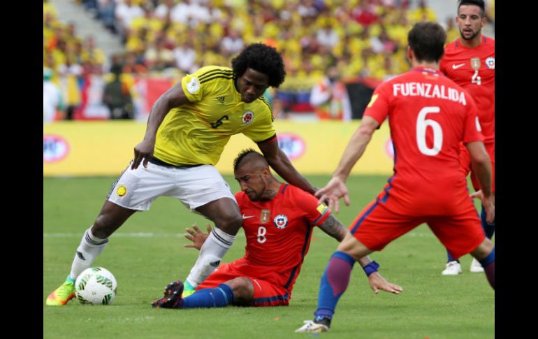 BARRANQUILLA, COLOMBIA (10/NOV/2016).- Chile sacó este jueves un valioso empate 0-0 ante Colombia, en un complicado partido disputado en la caribeña ciudad de Barranquilla por la undécima fecha de la clasificatoria sudamericana al Mundial Rusia-2018.El juego, muy luchado y cortado, careció de opciones de gol por las continuas faltas y lesiones que le quitaron ritmo al equipo cafetero, que mostró mayores intenciones ofensivas sobre todo en la segunda mitad."Buscamos de todas las maneras, tuvimos oportunidades, pero nos volvió a faltar precisión", dijo Pekerman al final del juego.El resultado mantiene vivas las aspiraciones de ambos seleccionados en la pareja y disputada clasificatoria mundialista sudamericana.El técnico de Chile, Juan Antonio Pizzi calificó el empate como "muy meritorio" dado "el contexto en que conseguimos este punto".En la próxima fecha, que se jugará el martes, Colombia, que suma 18 puntos en la tabla de posiciones, visitará a Argentina, mientras Chile, con 17 unidades, recibirá a Uruguay.El equipo de Pizzi, que llegó a Barranquilla en el quinto puesto de la tabla de posiciones tras recibir dos puntos de la FIFA al fallar en contra de Bolivia por haber alineado indebidamente a Nelson Cabrera en el choque disputado en Santiago, planteó un juego sin asumir muchos riesgos.En los primeros minutos 'La Roja' se hizo densa en la mitad del campo para recuperar la pelota en los intentos ofensivos del local y luego buscó la salida rápida por las líneas laterales, especialmente con Mauricio Isla por la zona derecha.Colombia, por su parte, lució impreciso porque sus volantes Orlando Berrío y Edwin Cardona no lograron conectarse rápidamente con la dinámica de juego y James Rodríguez estuvo solitario en la construcción de ataque.El equipo de la estrella solitaria insistió por la zona derecha, defendida por Farid Díaz, quien continuamente perdió ante Isla y José Fuenzalida, quienes centraron continuamente el balón buscando a Arturo Vidal y Eduardo Vargas, generando zozobra en la zaga colombiana. Falcao, el anhelado regresoCon el transcurrir de los minutos Chile cedió terreno al equipo cafetero que se fue aproximando al área rival con toques cortos y pausados, aunque sin profundidad frente al arco de Claudio Bravo.La primera opción clara de gol llegó a los 36 minutos en un cobro de tiro libre de James que cabeceó Oscar Murillo, pero el remate fue espectacularmente despejado por Bravo.En tiempo de descuento Colombia volvió a llegar con peligro en un nuevo cobro de James que remató Borja, pero de nuevo el portero chileno ahogó los gritos de gol que bajaban de las tribunas del Metropolitano.Para la segunda mitad Colombia salió más alegre y decidido, impulsada por el golpe anímico del ingreso al terreno del goleador Radamel Falcao García, quien no jugaba con el equipo tricolor desde octubre del año pasado por varias lesiones.Sin embargo, 'La Roja' apostó a quitarle ritmo al partido para evitar la continuidad del ataque local, que llegó por oleadas pero no tuvo claridad en su fútbol.Cuando Colombia cargaba, el once chileno tuvo una clara opción a los 78 minuto y estuvo a punto de irse en ventaja en un contragolpe trepidante que terminó con un remate cruzado de Fuenzalida, que salió ligeramente desviado.En la reacción el once de José Pekerman se fue encima de la visita, con permanente incursiones de James, Falcao, el creativo Macnelly Torres y Luis Muriel, que continuamente se estrellaron contra el muro defensivo de Pizzi.Al final el árbitro añadió nueve minutos por la pérdida de tiempo, pero el panorama no cambió y Colombia debió conformarse con ceder un empate en Barranquilla, el segundo consecutivo después del 2-2 con Uruguay el pasado 11 de octubre."Ahora estamos en una situación en la que nos obliga a ir a Argentina a sumar", reconoció Falcao.