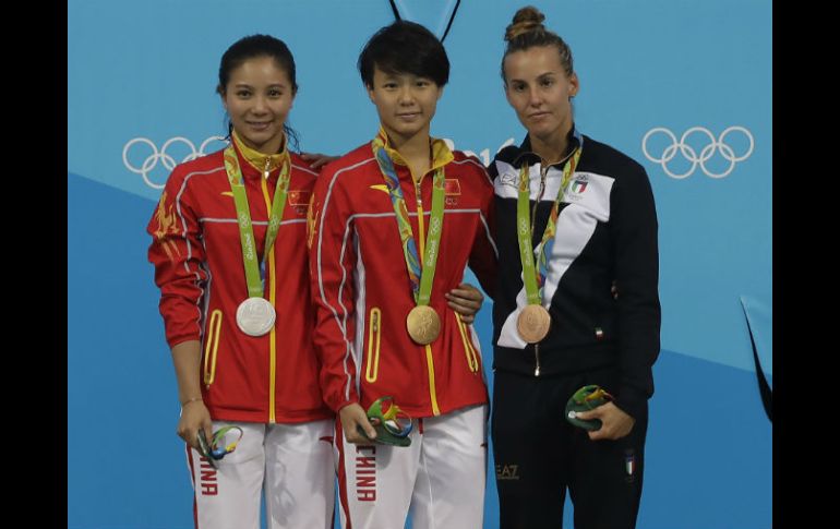RÍO DE JANEIRO, BRASIL (14/AGO/2016).- Con evidente superioridad, la clavadista china Tingmao Shi se apropió de la medalla de oro en la prueba de trampolín tres metros femenil de los Juegos Olímpicos Río 2016, al dominar la competencia con 406.05 puntos. Mientras tanto la medalla de plata fue para su compatriota Zi He, quien se quedó en el segundo puesto con 387.90 unidades, seguida por la italiana Tania Cagnotto, que cerró el podio del certamen tras concretar 372.80 puntos. Tingmao Shi, subcampeona en Londres 2012, acumuló la mejor puntuación durante los cinco saltos en que consistió la competición para sumar su segundo metal áureo en tierras brasileñas, después de haberse coronado en la rama de clavados sincronizados de trampolín tres metros. Con ello, la asiática Zi He se encargó de hacer el 1-2 en el podio para la delegación china tras culminar por detrás de su compatriota con una actuación destacable desde los tres metros de altura. Por su parte, la europea Tania Cagnotto fue la única competidora que pudo seguir de cerca el andar de las asiáticas al obtener 81 unidades en su último clavado, con cuya calificación consiguió un boleto directo al podio para colgarse el bronce olímpico.