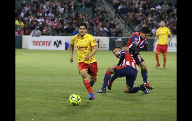 GUADALAJARA, JALISCO (23/MAR/2017).- En cotejo amistoso para aprovechar la fecha FIFA, el Guadalajara cayó 2-0 ante Morelia. Lo positivo del encuentro, es que debutó con el Rebaño aunque en amistoso, Ángel López, joven canterano y el técnico Matías Almeyda, pudo observar a todos los jóvenes.Chivas tuvo muy buena dinámica, el equipo, excepto Alejandro Zendejas, todos de las fuerzas básicas del Rebaño, así que el entendimiento, dinámica y precisión, provocaron que Morelia redoblara atención en zona baja.Guadalajara al minuto 21, llegó con una buena jugada individual por parte de Edson Torres, quien desde las afueras del área, sacó disparo con marca encima y se fue apenas por un costado del arco defendido por el cancerbero Felipe Rodríguez.El equipo tapatío de nueva cuenta al 25’ tuvo otra opción de gol, ésta la más clara hasta el momento. Edson Torres habilitó a Zendejas en las afueras del área por la derecha, enganchó al centro para abrirse espacio y sacó disparo que se fue apenas por un lado del poste derecho de Morelia.Los de Michoacán llegaron con peligro hasta el 38’, cuando Sansores recibió en las afueras del área, intentó mandar guardar el balón al ángulo superior derecho de “Guacho” Jiménez, para fortuna del arquero el esférico salió ligeramente desviado.Para el complemento se realizaron modificaciones, Monarcas comenzó a tener más llegada y los rojiblancos sufrieron más para generar. Michael Pérez sacó un balón de la línea de gol al 55’, antes ya había tenido otra aparición importante.Al 59’, Morelia se fue al frente en el marcador. Jorge Zárate agarró un esférico en tres cuartos de cancha, avanzó unos metros, se quitó a Marín de encima con enganche al centro, quedó muy bien parado, para luego sacar zapatazo a la base del poste izquierdo del “Guacho”.Chivas al 66’, recibió un regalo del árbitro central, ya que marcó penal cuando el balón le pegó a Loeschbor en el pecho, por un lado. El cobro fue del “Avión” Calderón, quien falló, el disparo fue a la derecha a media altura y Jair Urbina lo atajó sin problema.Morelia se fue al frente al 80’, Claudio Zamudio aprovechó un balón que le dejó Zárate dentro del área, la prendió de primera intención, la metió pegada al poste derecho del “Guacho” Jiménez, quien nada pudo hacer.AlineacionesGuadalajara: Miguel Jiménez; Diego Cortés (Ángel Zaldívar), Miguel Basulto, Hedgardo Marín, Michelle Benítez (Néstor Calderón); Josué Lázaro ({Ángel López), Alan Cervantes (Miguel Ponce), Edson Torres (Michael Pérez), Alejandro Zendejas (Alan Pulido); Carlos Fierro (Carlos Salcido) y Mauro Contreras (Guillermo Martínez). D.T. Matías Almeyda.Morelia: Felipe Rodríguez (Jair Urbina); Enrique Pérez (Diego Altamira), Emanuel Loeschbor (Diego Rangel), Eduardo Chávez, Rodolfo Vilchis; Aldo Rocha (Gastón Lezcano), Diego Valdés, Rodrigo Millar (Oliver Norato), Jefferson Cuero (Claudio Zamudio); Mario Osuna y Miguel Sansores (Jorge Zárate). D.T. Roberto Hernández.EL INFORMADOR / ALEJANDRO RAMÍREZ