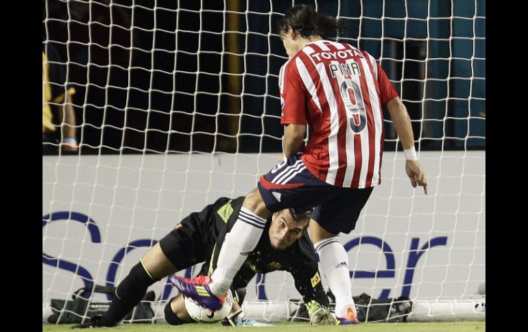 Deportes | Con un gran segundo tiempo, el Guadalajara vence 4-1 al cuadro culé en Miami Chivas sorprende al Barcelona Con un gran segundo tiempo, el Guadalajara vence 4-1 al cuadro culé en Miami Por: NTX 3 de agosto de 2011 - 20:35 hs El Guadalajara vino de atrás y derrotó al Barcelona. AP / VEA EL MINUTO A MINUTO DE ESTE PARTIDOMIAMI, FLORIDA (3/AGO/2011).- Con dos golazos de Marco Fabián de la Mora, Guadalajara exhibió y goleó 4-1 esta noche a Barcelona, en duelo amistoso que se realizó en el Sun Life Stadium de esta ciudad, ante más de 70 mil espectadores. El español David Villa adelantó al conjunto español al minuto tres, pero Fabián De la Mora, con sus anotaciones a los 60 y 63, Giovani Casillas, al 71, y José Luis Verduzco, al 91, le dieron la vuelta al marcador en duelo dirigido por el árbitro Baldomero Toledo. El mediocampista mexicano Jonathan dos Santos, de Barcelona, tuvo una discreta actuación los 90 minutos que vio acción. Apenas a los 40 segundos de iniciado el encuentro, Omar Arellano creó peligro en la portería de José Manuel Pinto, pero Eric Abidal salvó en la línea; al minuto tres, Barcelona no perdonó y David Villa venció a Luis Michel para el 1-0. Ambos equipos se entregaron y tuvieron claras oportunidades de anotar, el equipo ibérico para ampliar su ventaja y el "Rebaño Sagrado" en busca de la igualada, aunque Pinto, Michel y los postes evitaron que el marcador se moviera. En el complemento, tanto Josep Guardiola como José Luis Real comenzaron a realizar movimientos, y el equipo beneficiado fue Chivas, que exhibió al cuadro 'culé'. Al minuto 60, Marcó Fabián tomó el esférico y fuera del área sacó un derechazo imposible para Pinto, quien hizo más vistoso el gol con su lance. Tres minutos después, Omar Arellano desbordó por la banda derecha y envió centró preciso al mismo Marco Fabián, quien de chilena prendió el balón para darle la vuelta al marcador sobre el mejor equipo del mundo, con un golazo. Y faltaba más. Jesús Sánchez fue quien recorrió la banda derecha con el balón y lo envió al centro del área, donde Giovani Casillas, monarca del mundo Sub-17 con México, controló para definir con derecha y así estrenarse con el primer equipo de Chivas. En los minutos finales, el equipo blaugrana trató de acortar distancias, aunque Luis Michel evitó el tanto en la línea de gol; ya al 90, Verduzco desvió el esférico tras disparo de Casillas para el 4-1 sorpresivo y definitivo Temas Chivas Barcelona Miami Florida Lee También El Clásico Tapatío cambia de horario ¿Por qué Richard Ledezma no puede ser convocado con la Selección Mexicana? Chivas, en busca del pase directo a Liguilla tras un torneo de altibajos Chivas Femenil, una grande que se rezaga entre las campeonas Recibe las últimas noticias en tu e-mail Todo lo que necesitas saber para comenzar tu día Registrarse implica aceptar los Términos y Condiciones