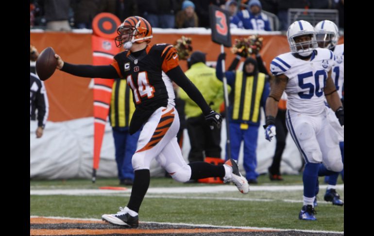 Deportes | El mariscal de campo de los Bengalíes se muestra sólido en victoria de 42-28 Cincinnati, de la mano de Dalton, derrota a los Potros El mariscal de campo de los Bengalíes se muestra sólido en victoria de 42-28 Por: AP 8 de diciembre de 2013 - 15:32 hs Andy Dalton tuvo cuatro anotaciones en total, tres por aire y una en un acarreo de ocho yardas. AP / CINCINNATI, OHIO (08/DIC/2013).- Andy Dalton tuvo tres envíos de anotación y acarreó el balón para una más el domingo y los Bengalíes de Cincinnati se mantuvieron invictos como locales y siguen al frente del Norte en la Conferencia Americana al vencer 42-28 a los Potros de Indianápolis. Los Bengalíes mejoraron su marca (9-4) y tienen seis juegos ganados en su estadio en un día frío y con viento, menos dos grados Celsius al inicio del partido con rachas de menos siete y ligeras ventiscas. Dalton tuvo su actuación más consistente desde octubre con tres envíos de anotación que le dieron la ventaja a los Bengalíes y corrió ocho yardas hasta la zona prometida en el último periodo. Dalton lanzó 35 pases de los cuales 24 fueron completos para ganancia de 275 yardas. Los Potros (8-5) volvieron a jugar mal al inicio y se cayeron en desventaja de 21-0 antes de que el mariscal de campo Andrew Luck despertara con cuatro pases de anotación para mantenerlos en la pelea. Pese a la derrota, los Potros siguen con la oportunidad de asegurar el campeonato en el sur de la Americana si Tennessee pierde su juego del domingo contra Denver. Temas NFL Futbol Americano Bengalíes de Cincinnati Potros de Indianápolis Lee También Todas las selecciones que han calificado al Mundial 2026 hasta hoy Chivas y América calientan en redes el Clásico Nacional de la Fecha FIFA Barcelona interesado en Gilberto Mora, esto es lo que se sabe Muere Miguel Ángel Russo, entrenador de Boca Juniors Recibe las últimas noticias en tu e-mail Todo lo que necesitas saber para comenzar tu día Registrarse implica aceptar los Términos y Condiciones