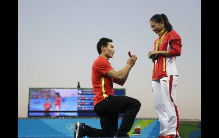 RÍO DE JANEIRO, BRASIL (14/AGO/2016).- Muchas emociones en pocos minutos para la china He Zi. Tras ganar una medalla de plata en clavados, recibió una inesperada petición de matrimonio de parte de otro miembro de su equipo al bajar del podio este domingo en los Juegos Olímpicos de Rio.La escena fue captada en directo por la OBS, la televisión oficial de los Juegos de Rio-2016.He, segunda en clavados desde trampolín de 3 metros por detrás de su compatriota Shi Tingmao y delante de la italiana Tania Cagnotto, estaba aún tratando de digerir su medalla cuando Qin Kai, bronce en clavados sincronizados desde trampolín de 3 metros, se presentó ante ella con un estuche de terciopelo.El mundo entero fue testigo de este momento a través de la pequeña pantalla.Desconcertada, la joven clavadista tardó unos segundos en reaccionar. Luego derramó una lágrima y asintió con la cabeza a la petición de su novio, que tenía una rodilla en el suelo.Entonces, él le deslizó el anillo en el dedo. Los dos jóvenes se abrazaron con pudor antes de marcharse agarrados del brazo."Estamos juntos desde hace seis años pero no me esperaba que me pidiera matrimonio hoy", declaró mostrando orgullosa su anillo."Dijo muchas cosas, prometió muchas cosas, pero creo que lo que más me conmovió es que es el hombre en el que pudo confiar durante el resto de mis días", agregó la subcampeona olímpica.