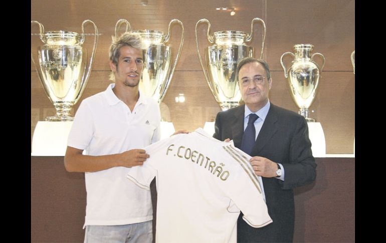 Deportes | Quinto refuerzo merengue Coentrao llega al Madrid por 30 millones de euros El zaguero luso, proveniente del Benfica, estuvo ayer en Madrid para arreglar su transferencia Por: EFE 6 de julio de 2011 - 04:17 hs El presidente del Real, Florentino Pérez (der.), le da la bienvenida al defensa portugués. EFE / MADRID, ESPAÑA (06/JUL/2011).- El Real Madrid pagará 30 millones de euros (43.5 millones de dólares) por el zaguero Fabio Coentrao, del Benfica, y el internacional portugués ya es la quinta contratación del poderoso club español. Coentrao estaba ayer en la capital española para arreglar su transferencia. El Benfica informó de la transferencia en una declaración a la Bolsa de Valores de Lisboa. Dijo que la operación depende de que el futbolista apruebe un examen médico y convenga los detalles de su contrato con el Madrid. El técnico del Madrid, José Mourinho, está formando una escuadra para competir con el campeón español Barcelona. Real Madrid ya ha contratado a los internacionales turcos Nuri Sahin y Hamit Altintop, el español José Callejón y el joven defensor francés Rafael Varane. Ficha Nombre: Fabio Coentrao Apodo: El Figo de las Caxinas Origen: Vila do Conde, Portugal Edad: 23 años Posición: Defensa Estatura: 1.79 mts. Club origen: Benfica Año debut: 2007 Títulos: Campeón de Liga y Copa 2009-10 Partidos con su Selección: 15 Torneos internacionales: Mundial Sudáfrica 2010 Temas Futbol Español Futbol Internacional Real Madrid Recibe las últimas noticias en tu e-mail Todo lo que necesitas saber para comenzar tu día Registrarse implica aceptar los Términos y Condiciones