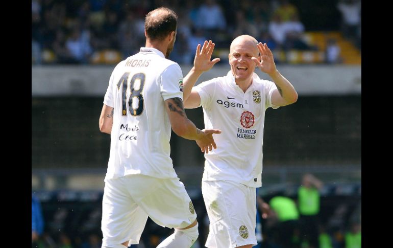 Deportes | El club mastín venció 2-1 a la escuadra toscana en el estadio Marc'Antonio Bentegodi Con 'Rafa' Márquez todo el partido, Hellas Verona gana al Empoli El club mastín venció 2-1 a la escuadra toscana en el estadio Marc'Antonio Bentegodi Por: NTX 17 de mayo de 2015 - 15:00 hs Al minuto 24 festejaron la anotación del griego Vangelis Moras. EFE / G. Zanardelli VERONA, ITALIA (17/MAY/2015).- Con ayuda del zaguero mexicano Rafael Márquez, Hellas Verona venció 2-1 al Empoli y siguió con su cometido de escalar lo más posible en la clasificación de Serie A para terminar con dignidad esta temporada 2014/15. El experimentado michoacano reapareció como titular tras pagar la sanción que le acarreó la polémica tarjeta roja que se vio el pasado 3 de mayo, en el encuentro que su equipo perdió 1-0 contra Udinese. "Rafa" y el resto del club mastín se presentaron por penúltima vez frente a sus seguidores en el Estadio Marc'Antonio Bentegodi y lograron remar contracorriente para quedarse con los tres puntos, luego de verse abajo desde los seis minutos del primer lapso. Riccardo Saponara se encargó de inaugurar la pizarra en favor de la escuadra toscana, pero los dirigidos por Andrea Mandorlini se repusieron rápido del golpe tempranero y celebraron el 1-1 al minuto 24, con la anotación del espigado defensa griego Vangelis Moras. Para la segunda mitad, el conjunto "gialloblu" resultó el más contundente a la hora de pisar el área enemiga y para el 67, Jacopo Sala inclinó la balanza para los de casa, con el 2-1 que a la postre fue definitivo. El triunfo impulsó al Hellas a la décimo segunda casilla con 44 unidades y ya vislumbra la luz al final del camino, que en un inicio fue muy complicado, con sólo dos compromisos más antes de romper filas, primero en casa del descendido Parma y luego volverá a casa para hacerle los honores al campeón del torneo, Juventus. Resultados de la jornada dominical en Serie A: -Fecha 36 Hellas Verona 2 - 1 Empoli Sassuolo 3 - 2 AC Milan Torino 2 - 0 Chievo Atalanta 1 - 4 Genoa Cagliari 0 - 1 Palermo Temas Mexicanos en Europa Futbol italiano Futbol Internacional Rafael Marquez Álvarez Serie A Lee También México vs Argentina • Momentos Destacados • Cuartos de Final • Mundial Sub-20 Inauguran Festival Cervantino con mensaje para Veracruz "Chucky" Lozano reconoce que jugaría en Chivas o en América Dónde ver EN VIVO el México vs Argentina por el Mundial Sub-20 Recibe las últimas noticias en tu e-mail Todo lo que necesitas saber para comenzar tu día Registrarse implica aceptar los Términos y Condiciones