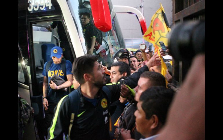 Deportes | Unos 150 aficionados esperaban ansiosos a las Águilas en el hotel de concentración Con cantos, reciben al América en Guadalajara Unos 150 aficionados esperaban ansiosos a las Águilas en el hotel de concentración Por: EL INFORMADOR 12 de marzo de 2016 - 19:56 hs GUADALAJARA, JALISCO (12/MAR/2016).- Ante unos 150 aficionados que esperaban ansiosos la llegada de su equipo en el hotel de concentración, entre cánticos y porras, las Águilas del América llegaron a la ciudad de Guadalajara al filo de las 19:00 horas, en donde encararán el Clásico Nacional ante el Rebaño Sagrado este domingo a las 19:30 horas en el estadio Chivas. Aunque se esperaba que el equipo azulcrema hiciera su llegada cercanas las 17:00 horas, lo hicieron dos horas más tarde, pero esto no impidió que ese centenar y medio de aficionados tuvieran toda la actitud para apoyar a su escuadra, todo a pesar de que al momento de la llegada del autobús, tuvieran problemas para ver a sus ídolos, debido a que los dispositivos de seguridad, primero por la Seguridad Pública y luego por los elementos del hotel en donde se hospedan, hicieron imposible que se pudieran tomar la tan anhelada fotografía o les pidieran un autógrafo. Fueron Oribe Peralta, Rubens Sambueza y Moisés Muñoz, los tres jugadores más aclamados por parte de la fanaticada, quienes los recibieron con gritos, porras y un aliento impresionante, a lo que los jugadores únicamente alcanzaron a saludar a lo lejos. Quienes tampoco saludaron, ni emitieron declaraciones, fueron el vicepresidente deportivo Ricardo Peláez, ni el director técnico Ignacio Ambríz, personajes que pasaron de largo en la puerta alterna del hotel ubicado en la Avenida Américas. Cuando todo terminó, los aficionados se relajaron, otros seguían gritando y brincando, provocando que los Policías de Guadalajara pusieran cierto orden, sin que nada pasara a mayores. EL INFORMADOR / JAVIER ROBLES Temas Chivas Futbol Mexicano Águilas del América Clásico nacional Liga MX Clausura 2016 Lee También ¿Dónde ver EN VIVO el partido amistoso México vs Colombia? Dónde ver EN VIVO el México vs Argentina por el Mundial Sub-20 La actualidad de Diego Ochoa, formado en Chivas y destacado en el Mundial Sub-20 Dólar amanece encarecido este 10 de octubre Recibe las últimas noticias en tu e-mail Todo lo que necesitas saber para comenzar tu día Registrarse implica aceptar los Términos y Condiciones