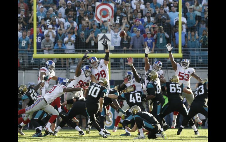 Deportes | Jacksonville se recupera de una desventaja de 21 puntos para superar 25-24 a Nueva York Con gran remontada, Jaguares vencen a Gigantes Jacksonville se recupera de una desventaja de 21 puntos para superar 25-24 a Nueva York Por: AP 30 de noviembre de 2014 - 15:42 hs Josh Scobee anota un gol de campo de 33 yardas a 28 segundos del final para conseguir la victoria. AP / J. Raoux JACKSONVILLE, FLORIDA (30/NOV/2014).- Josh Scobee convirtió un gol de campo de 33 yardas, a 28 segundos del final, y los Jaguares de Jacksonville remontaron una desventaja de 21 puntos para superar el domingo 25-24 a los Gigantes de Nueva York. Los Jaguares (2-10) pusieron fin a una racha de cuatro encuentros y propinaron a los Gigantes (3-9) su séptima derrota consecutiva, lo que generaría más dudas sobre el futuro del entrenador Tom Coughlin. Nueva York dominó la primera mitad, al anotar 21 puntos en el segundo cuarto. Parecía que los Gigantes conseguirían su primer triunfo desde comienzos de octubre. Pero Jacksonville jugó como un equipo diferente después del medio tiempo, sobre todo a la defensiva. Geno Hayes obligó a que Eli Manning soltara un ovoide en el comienzo del tercer cuarto, y J.T. Thomas recuperó el balón en la zona prometida. El novato Aaron Colvin se apoderó de otro balón suelto y lo condujo 41 yardas para anotar en el cuarto periodo. Es la primera vez en la historia de la franquicia que Jacksonville anota dos veces mediante su defensiva en el mismo encuentro. Temas NFL Futbol Americano Gigantes de Nueva York Jaguares de Jacksonville Lee También Cartucho Futbol hoy 16 de octubre de 2025: ¿Dónde ver los partidos en vivo? Atlas Femenil paga caro un error y ve alejarse la Liguilla ante América Cada partido será una final para nosotros: Diego Cocca Recibe las últimas noticias en tu e-mail Todo lo que necesitas saber para comenzar tu día Registrarse implica aceptar los Términos y Condiciones