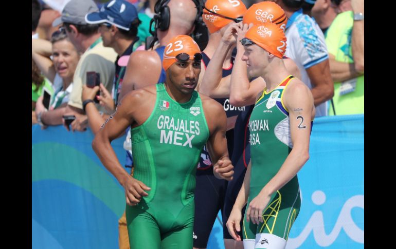 RÍO DE JANEIRO, BRASIL (18/AGO/2016).- El mexicano Crisanto Grajales culminó en el lugar 12 de la prueba de triatlón de los Juegos Olímpicos Río 2016, mientras que su compatriota Irving Pérez apareció en la posición 22 y Rodrigo González fue eliminado. Grajales hizo un tiempo de 1:47:28 horas para su posición final. En natación cronometró 17:59 minutos y se colocó en el puesto 29; tras los 40 kilómetros de bicicleta acumulaba crono de 1:14:41 horas para el sitio 26. Y luego de los 10 mil metros de la carrera a pie no le alcanzó para subir al podio y debió conformarse con la duodécima plaza general. Irving Pérez totalizó un tiempo de 1:48:26 horas para entrar en el sitio 29, mientras que Rodrigo González se quedó pasada la primera mitad del recorrido en bicicleta, pues fue eliminado.