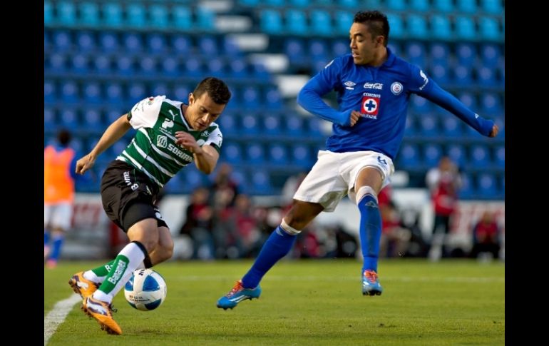 Deportes | La Máquina se luce en casa y gana a Santos por 2-1 Cruz Azul consigue el primer triunfo del Clausura 2014 La Máquina se luce en casa y gana a Santos por 2-1 Por: EL INFORMADOR 11 de enero de 2014 - 18:08 hs Marco Fabián (der.) tuvo una actuación discreta; fue amonestado por participar en un conato de bronca. MEXSPORT / CIUDAD DE MÉXICO (11/ENE/2013).- Cruz Azul logra su primer triunfo del Clausura 2014 al ganar 2-1 a Santos Laguna que se queda con un punto. Los laguneros comenzaron el partido con gol, curiosamente con el esfuerzo de Javier Orozco, quien debutó y jugó con la "Máquina" hasta mediados del 2013. Ya en la recta final del juego, fue cuando los cementeros le dieron la vuelta al partido con el cabezazo de Amione que aprovechó el centro de Marco Fabián a los 87 y Mariano Pavone anotó con otro cabezazo a los 90 para marcar el gol del triunfo. Cruz Azul dominó la pelota la mayor parte del tiempo pero no fue claro en sus llegadas y Santos pudo haber ampliado su ventaja a los 73 con un disparo del colombiano Carlos Darwin Quintero que se estrelló en el travesaño. Con el triunfo, Cruz Azul acumula cuatro puntos y está empatado con Tijuana y Veracruz en el segundo lugar de la clasificación general que es comandada por Querétaro con seis unidades; Santos se quedó con una unidad y está en el sitio 16 de la tabla. El encuentro, que se jugó sin público en las tribunas del Estadio Azul por una sanción impuesta por la Federación Mexicana de Futbol luego de una invasión de cancha en un partido de Liguilla. (Con información de AP) Temas Futbol Mexicano Máquina del Cruz Azul Santos Laguna Clausura 2014 Lee También México vs Corea del Sur: EN VIVO, dónde ver el partido por el Mundial Sub-17 femenil ¿Empate entre Cruz Azul y América? Esto pronostica la IA México, el número uno de Concacaf según ranking de la FIFA ¿Dónde ver EN VIVO el partido de J13 Cruz Azul vs América? Recibe las últimas noticias en tu e-mail Todo lo que necesitas saber para comenzar tu día Registrarse implica aceptar los Términos y Condiciones