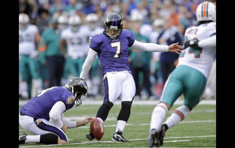 Deportes | Cundiff tuvo una gran aportación conectando cuatro goles de campo para el Baltimore Cuervos vence a los Delfines Cundiff tuvo una gran aportación conectando cuatro goles de campo para el equipo de Baltimore Por: AP 7 de noviembre de 2010 - 14:56 hs Billy Cundiff en acción durante el partido ante Delfines de Miami. AP / BALTIMORE, E.U. (07/NOV/2010).- Billy Cundiff anotó cuatro goles de campo y los Cuervos de Baltimore redoblaron la ofensiva después del medio tiempo para vencer el domingo por 26-10 a los Delfines de Miami, que estaba invicto como visitante. Baltimore (6-2) sumó su séptima victoria en casa con el apoyo de Cundiff y de una defensiva que blanqueó a Miami (4-4) en la segunda mitad. Cundiff conectó desde 26, 39, 20 y 24 yardas, en tanto los Ravens contuvieron a los Delfines a 24 yardas en los últimos 30 minutos. El mariscal de campo Chad Henne de los Dolphins lanzó 34 pases y acertó 22 para 231 yardas y tres intercepciones. Miami llegó con foja de 4-0 como visitante, pero los Cuervos no parecieron impresionarse. Baltimore nunca vio hacia atrás y tomó distancia luego de irse al descanso con una ventaja de 13-10. Joe Flacco completó 20 de 27 pases para 266 yardas y dos touchdowns por los Cuervos, que tienen registro de 6-0 en casa desde el 2001. Temas NFL Futbol Americano Delfines de Miami Cuervos de Baltimore Lee También Futbol hoy 16 de octubre de 2025: ¿Dónde ver los partidos en vivo? Atlas Femenil paga caro un error y ve alejarse la Liguilla ante América Cada partido será una final para nosotros: Diego Cocca México encadena cuatro partidos sin ganar, algo que no sucedía desde 2021 Recibe las últimas noticias en tu e-mail Todo lo que necesitas saber para comenzar tu día Registrarse implica aceptar los Términos y Condiciones