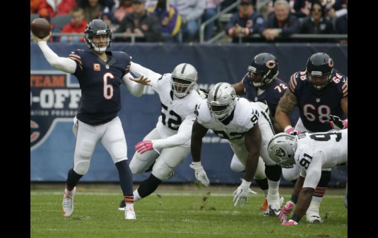 Deportes | Chicago gana 22-20 a Oakland en partido donde Cutler lanzó dos pases para touchdown Cutler reaparece en triunfo de Osos sobre Raiders Chicago gana 22-20 a Oakland en partido donde Cutler lanzó dos pases para touchdown Por: AP 4 de octubre de 2015 - 17:13 hs Cutler (6) llevó a Chicago (1-3) desde su yarda 20 a la 32 de Oakland. AP / N. Huh CHICAGO, ESTADOS UNIDOS (04/OCT/2015).- Jay Cutler lanzó pases para dos touchdowns y se redimió tras lanzar un pase que fue interceptado al dirigir una serie que preparó el gol de campo de 49 yardas de Robbie Gould en los segundos finales para que los Osos de Chicago derrotaran 22-20 a los Raiders de Oakland el domingo. Fue el primer triunfo de John Fox como entrenador de los Osos. Los Raiders (2-2) tomaron la delantera gracias a un gol de campo de Sebastian Janikowski cuando restaban poco más de dos minutos que fue antecedida por un pase que interceptó Charles Woodson en territorio de Oakland. Luego Cutler llevó a Chicago (1-3) desde su yarda 20 a la 32 de Oakland, donde Gould acertó el gol de campo de la victoria para dar el triunfo a Osos. Temas NFL Futbol Americano Raiders de Oakland Osos de Chicago Recibe las últimas noticias en tu e-mail Todo lo que necesitas saber para comenzar tu día Registrarse implica aceptar los Términos y Condiciones
