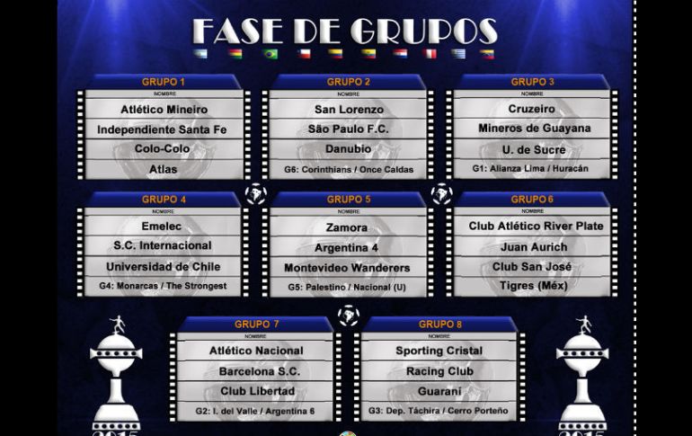 Deportes | Atlas se verá las caras con Colo Colo, el Atlético Mineiro y el Independiente Definen grupos de Copa Libertadores Atlas se verá las caras con Colo Colo, el Atlético Mineiro de Brasil y el Independiente de Santa Fe Por: NTX 21 de diciembre de 2014 - 21:54 hs Así quedó la fase grupal de la Copa Libertadores 2015 con los nuevos clubes clasificados. TWITTER / @CBrLibertadores CIUDAD DE MÉXICO (21/DIC/2014).- Quedó definido el Grupo Uno de la Copa Libertadores de América 2015, en el que Atlas se verá las caras con Colo Colo, el Atlético Mineiro de Brasil y el equipo colombiano del Independiente de Santa Fe. Este domingo, el cuadro "cafetero" conquistó la liga de su país para así ganarse su lugar en dicho sector, en el cual ya estaban clasificados la "Furia Rojinegra", Colo Colo de Chile, así como el Mineiro que conquistó la Copa de Brasil. Por otra parte, el cuadro peruano del Juan Aurich será rival de los Tigres de la UANL, dentro del sexto sector que lo completan River Plate de Argentina y San José de Bolivia. Morelia, la otra escuadra mexicana en este certamen, se verá las caras con el cuadro boliviano The Strongest en la primera fase, donde buscarán su clasificación a la ronda de grupos. Temas Atlas Copa Libertadores Futbol Internacional Tigres River Plate Lee También ¿Dónde ver Argentina vs Colombia: semifinal del Mundial Sub-20? Calendario de partidos de la J13 del Apertura 2025 “Vainilla”, esencia femenina que atrapa las miradas del FICM Hirving Lozano confía en el proceso del Tri Recibe las últimas noticias en tu e-mail Todo lo que necesitas saber para comenzar tu día Registrarse implica aceptar los Términos y Condiciones