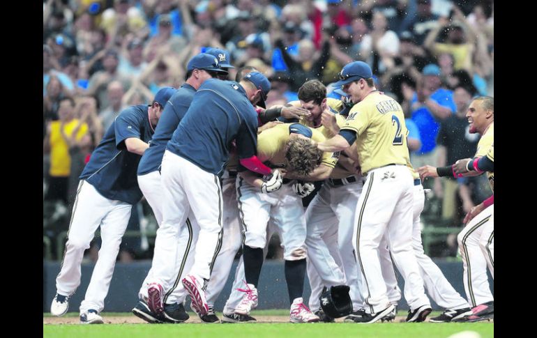 Deportes | Nueva York cae 6-5 ante Milwaukee Deja tendidos a los Yanquis Mark Reynolds conecta un imparable productor en la baja de la novena entrada para vencer a Nueva York Por: AP 12 de mayo de 2014 - 01:18 hs A brindar. Compañeros de Mark Reynolds celebran con el inicialista el triunfo. AFP / MILWAUKEE, ESTADOS UNIDOS (12/MAY/2014).- Mark Reynolds empujó la carrera decisiva con un sencillo con dos outs en el noveno inning y los Cerveceros de Milwaukee se sobrepusieron al primer salvamento desperdiciado por Francisco Rodríguez en la campaña para una victoria de 6-5 el domingo sobre los Yanquis de Nueva York. Rickie Weeks bateó un doblete junto a la raya del derecho con un out y avanzó a tercera con un lanzamiento descontrolado del relevista Adam Warren (1-2). Reynolds, que jugó brevemente para los Yanquis el año pasado, alzó el índice derecho en celebración cuando su machucón rebasó la zambullida del antesalista Yangervis Solarte dos bateadores más tarde. Los Yanquis estaban a un strike de la derrota en la parte alta del noveno cuando Mark Texeira conectó un lanzamiento afuera y debajo de Rodríguez y conectó un jonrón al derecho. Fue el primer cuadrangular permitido este año por el veterano taponero venezolano. PIZARRASOtros marcadores S.Francisco 7-4 Dodgers Miami 4-5 San Diego Kansas C. 9-7 Seattle Washington 1-9 Oakland Boston 5-2 Texas Arizona 5-1 M. Blancas Cleveland 6-5 Tampa Houston 5-2 Baltimore Cachorros 2-5 Atlanta Filadelfia 4-5 Mets Colorado 1-4 Cincinnati Minnesota 4-3 Detroit Angelinos 9-3 Toronto Temas Beisbol MLB Yankees de Nueva York Cerveceros de Milwaukee Lee También Dónde ver EN VIVO los juegos de MLB, HOY 9 de octubre ¿Dónde ver EN VIVO Eagles vs. Giants? Resultados de las Series Divisionales: Azulejos elimina a los Yankees Conceden suspensión definitiva a Hernán 'N', líder de La Barredora Recibe las últimas noticias en tu e-mail Todo lo que necesitas saber para comenzar tu día Registrarse implica aceptar los Términos y Condiciones