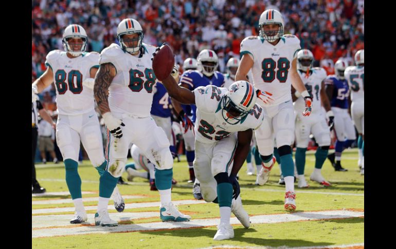 Deportes | Miami gana a Bills pero no le alcanza para calificar en la Americana Delfines se despide del playoff Miami gana a Bills pero no le alcanza para calificar en la Americana Por: AP 23 de diciembre de 2012 - 16:53 hs Reggie Bush (centro) azota el balón luego de una de sus tres anotaciones en el juego. AP / MIAMI, FLORIDA (23/DIC/2012).- Reggie Bush atrapó dos pases de touchdown y anotó otro en acarreo, para ayudar el domingo a los Dolphins de Miami a vencer 24-10 a los Bills de Buffalo. Pero los Delfiness (7-8) quedaron fuera de la contienda por los playoffs cuando Cinncinati venció a Pittsburgh 13-10. Miami llegó al partido un apenas una débil esperanza de pasar a los playoff y en lugar de ello queda fuera por 10 ocasión en 11 años. Los Bills (5-10), en tanto, estaban completamente eliminados de la competencia, por 13ra temporada en fila. Mientras que Bush encabezó un ataque eficiente, el safety Reshad Jones recuperó dos balones perdidos e hizo una intercepción en la yarda 1 de Miami a 71 segundos del final, para sellar el triunfo. Temas NFL Futbol Americano Bills de Buffalo Delfines de Miami Recibe las últimas noticias en tu e-mail Todo lo que necesitas saber para comenzar tu día Registrarse implica aceptar los Términos y Condiciones