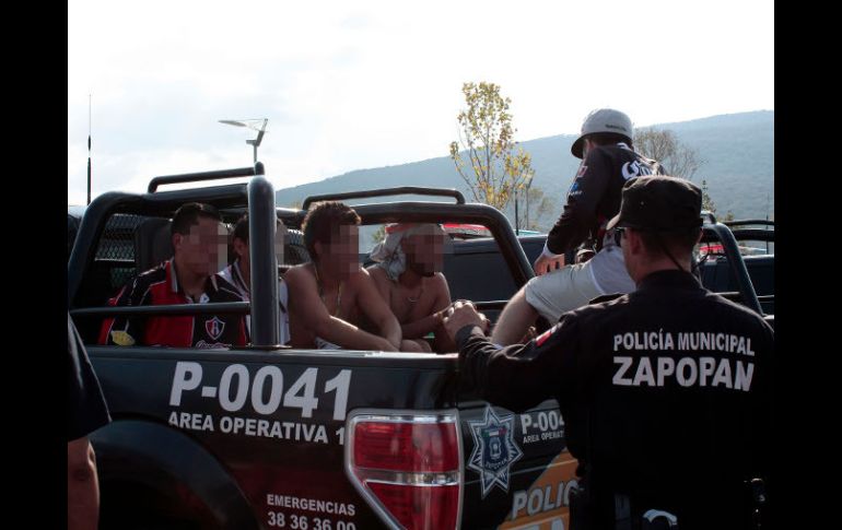 Deportes | Cometen faltas administrativas al acudir del Clásico tapatío Detienen a porristas Más de 600 policías de la Dirección de Seguridad Publica Zapopan y de vigilancia privada mantienen el operativo de seguridad en el Estadio Omnilife Por: EL INFORMADOR 28 de octubre de 2012 - 17:37 hs Policías de Zapopan realizaron las detenciones. / ZAPOPAN, JALISCO (28/OCT/2012).- Ante los posibles desmanes por miembros de las porras del Guadalajara y del Atlas, la Dirección de Seguridad Pública de la ex Villa Maicera implementó un fuerte dispositivo de seguridad en las inmediaciones del Estadio Omnilife; fueron arrestados 9 nueve y retenido un menor de edad. Dos horas antes de que iniciara el clásico del futbol entre las Chivas y los rojinegros, los porristas de ambos equipos que iban llegando fueron sometidos a una revisión preventiva, con el fin de localizar alguna navaja, tubo, piedra o porciones de drogas. Por su parte, más de 600 policías de la Dirección de Seguridad Publica Zapopan y de vigilancia privada mantienen el operativo de seguridad. Por su parte, agentes de Vialidad han dado fluidez al tráfico que circula por Periférico y Vallarta para el ingreso del Estadio de Chivas. Temas Chivas Atlas Torneo Apertura 2012 Liga MX Lee También Atlas Femenil paga caro un error y ve alejarse la Liguilla ante América Cada partido será una final para nosotros: Diego Cocca Calendario de partidos de la J13 del Apertura 2025 Charros de Jalisco vuelve por el bicampeonato en la LMP Recibe las últimas noticias en tu e-mail Todo lo que necesitas saber para comenzar tu día Registrarse implica aceptar los Términos y Condiciones