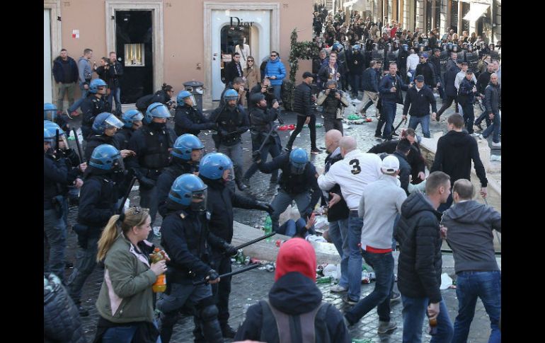 Deportes | Al menos diez agentes y tres simpatizantes holandeses resultan lesionados Disturbios entre aficionados y policías deja 13 heridos en Italia Al menos diez agentes y tres simpatizantes holandeses resultan lesionados durante desórdenes registrados Por: NTX 19 de febrero de 2015 - 16:07 hs Según portavoces de la policía, los hechos más graves se verificaron en la céntrica Plaza de España. EFE / V. Tersigni ROMA, ITALIA (19/FEB/2051).- Al menos diez agentes y tres aficionados holandeses resultaron heridos esta tarde durante desordenes registrados en el centro de la capital italiana, pocas horas antes del inició del partido entre los equipos Roma y Feyenoord, informó la policía. "Roma ha sido devastada y herida", denunció el alcalde de la Ciudad Eterna, Ignazio Marino, a través de una red social, tras los desmanes de los hinchas del Feyenoord. Dijo que "nuestra capital, tan delicada, y sus ciudadanos no pueden convertirse en rehenes de violentos llegados con el pretexto de apoyar a su escuadra". Según portavoces de la policía, los hechos más graves se verificaron en la céntrica Plaza de España, donde la fuente "La Barcaccia", diseñada en el siglo XVII por el arquitecto Pietro Bernini y su hijo Gian Lorenzo, resultó dañada. La zona quedó cubierta de botellas de cerveza y objetos lanzados por los seguidores de la escuadra de Rotterdam, que fueron cargados por los agentes en autobuses para ser transferidos al estadio, donde estaba programado el partido de la Liga Europea. En los desordenes resultaron heridos diez agentes de seguridad y tres "hooligans", aunque no de gravedad, confirmó la jefatura de la policía. Temas Futbol italiano Futbol Internacional Europa League Lee También Cada partido será una final para nosotros: Diego Cocca México encadena cuatro partidos sin ganar, algo que no sucedía desde 2021 ¿Dónde ver Argentina vs Colombia: semifinal del Mundial Sub-20? Calendario de partidos de la J13 del Apertura 2025 Recibe las últimas noticias en tu e-mail Todo lo que necesitas saber para comenzar tu día Registrarse implica aceptar los Términos y Condiciones