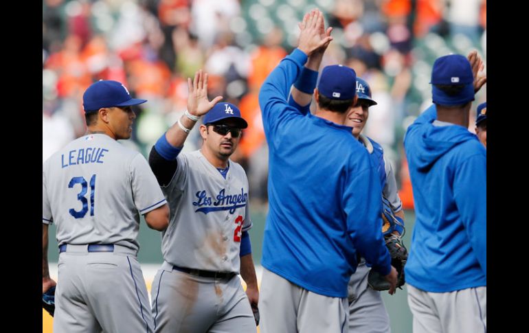 Deportes | Ellis remolca tres y lleva a Los Ángeles a una victoria ante Orioles Dodgers cortan mala racha Ellis remolca tres y lleva a Los Ángeles a una victoria ante Orioles Por: EFE 21 de abril de 2013 - 17:31 hs Los Dodgers por fin pudieron sacar una victoria en las Ligas Mayores. AFP / BALTIMORE, MARYLAND (21/ABR/2013).- El segunda base Mark Ellis remolcó tres carreras para los Dodgers de Los Ángeles, que derrotaron 7-4 a los Orioles de Baltimore y detuvieron una racha de derrotas consecutivas. Ellis se fue de 4-1 con tres remolcadas, para los Dodgers, que habían sumado siete derrotas seguidas. El triunfo fue para el relevo J.P. Howell (1-0), que lanzó sólo un tercio de entrada, en el que permitió un imparable y retiró a uno por la vía del ponche. Por los Orioles el guardabosques Adam Jones (3) jonroneó solitario contra el abridor Stephen Fife. La derrota la cargó el abridor Jake Arrieta (1-1) en cuatro episodios, permitió dos imparables, cinco carreras, dio cinco bases y ponchó a seis. Temas Beisbol MLB Dodgers de Los Ángeles Lee También Dónde ver EN VIVO los juegos de MLB, HOY 15 de octubre Panorámica Mirador Residencial lanza su desarrollo vertical Resultados de las Series de Campeonato: Dodgers vuelven a castigar a Cerveceros Charros de Jalisco vuelve por el bicampeonato en la LMP Recibe las últimas noticias en tu e-mail Todo lo que necesitas saber para comenzar tu día Registrarse implica aceptar los Términos y Condiciones